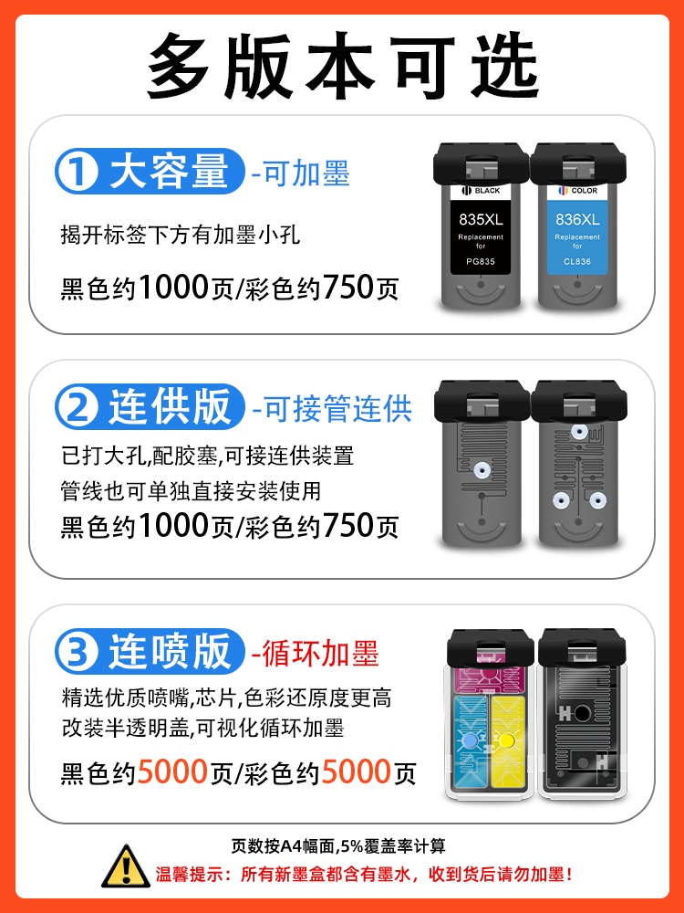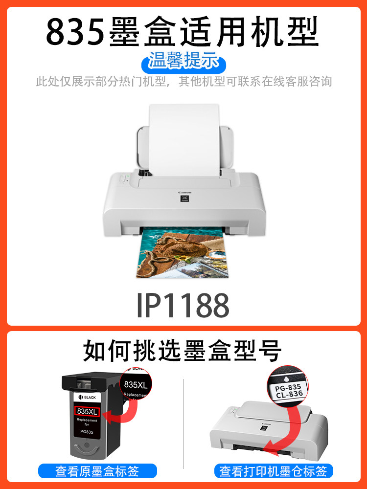 适用佳能PG835XL墨盒canon Pixma ip1188打印机连供可加墨CL-836