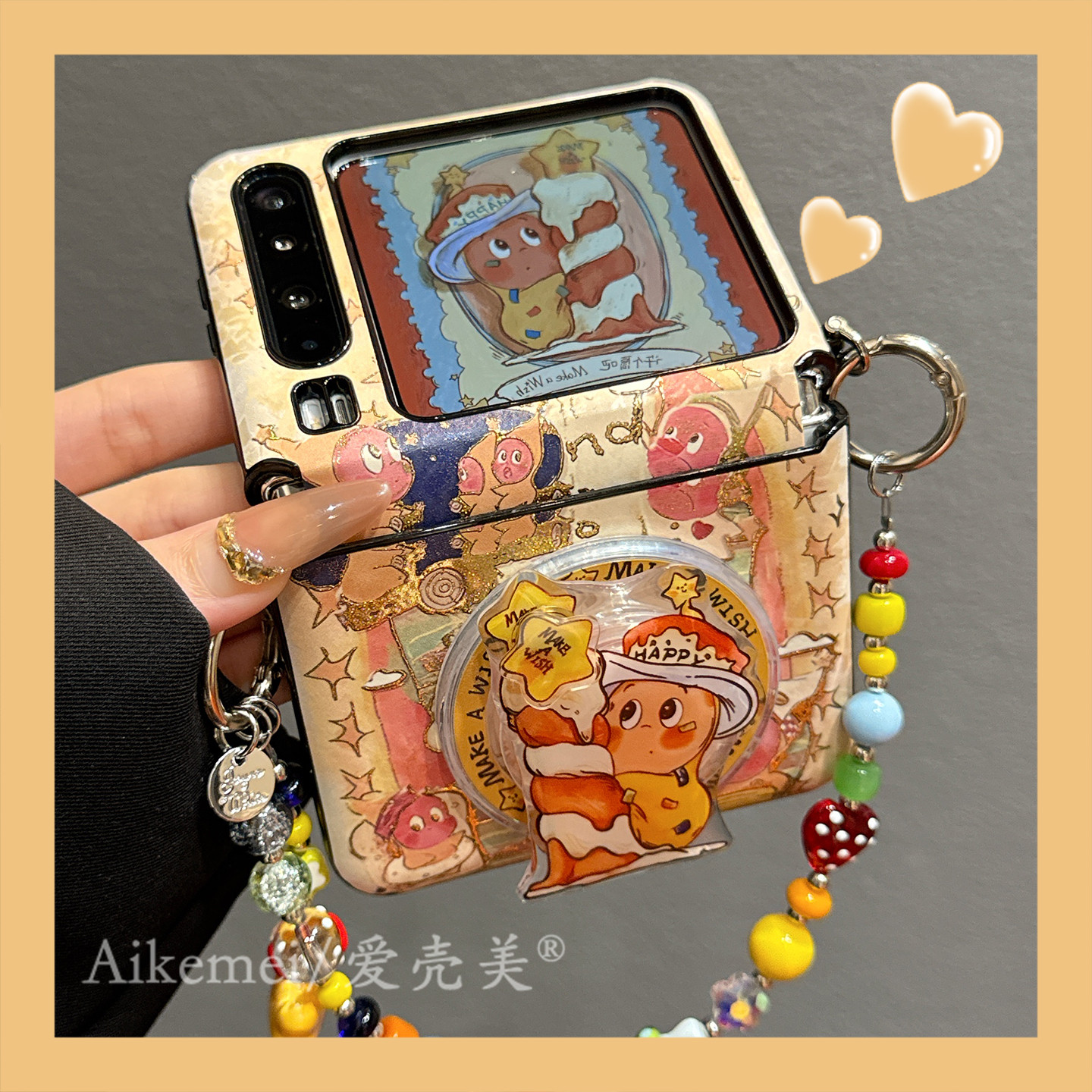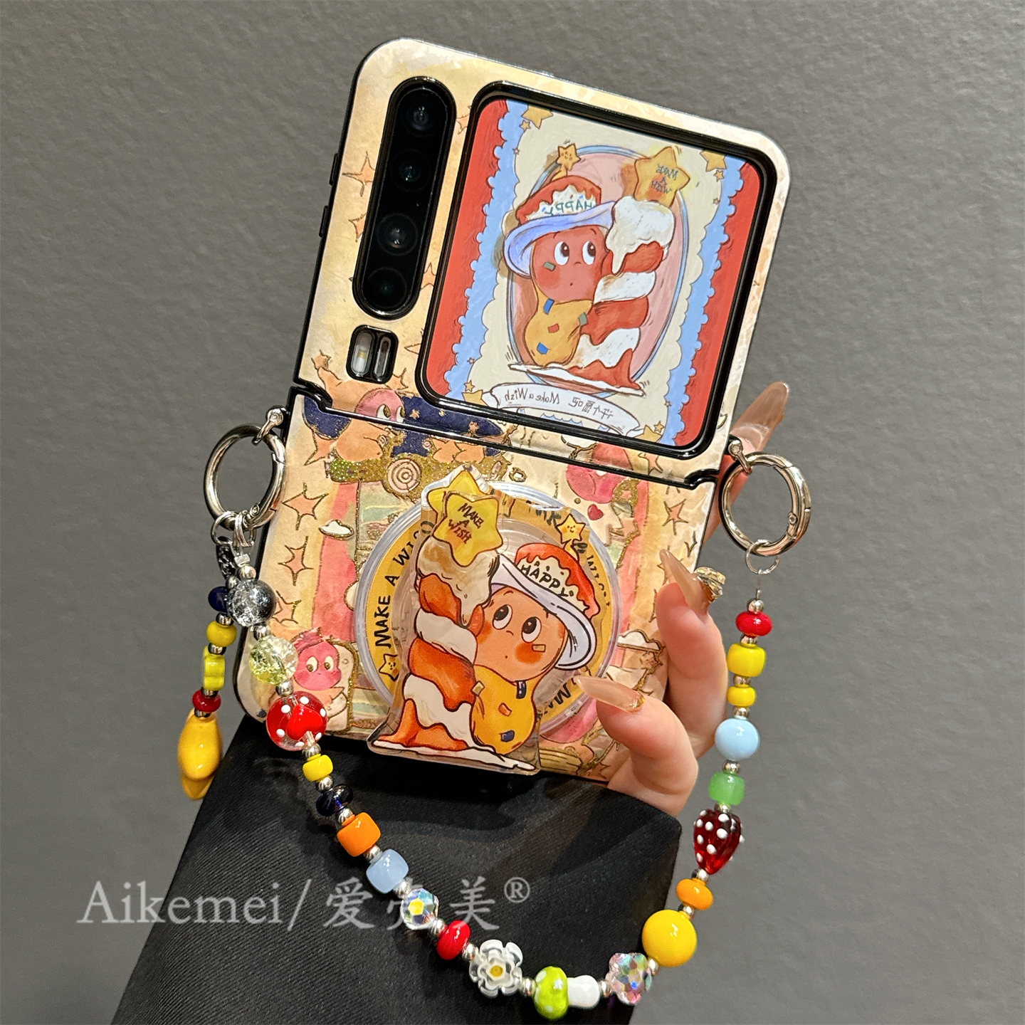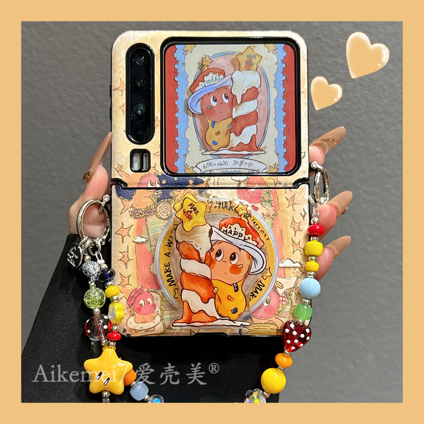 适用华为purax典藏版手机壳pocket2创意可爱卡通蜡烛旋转小米mixflip2磁吸支架三星zflip765挂绳护轴防摔男女