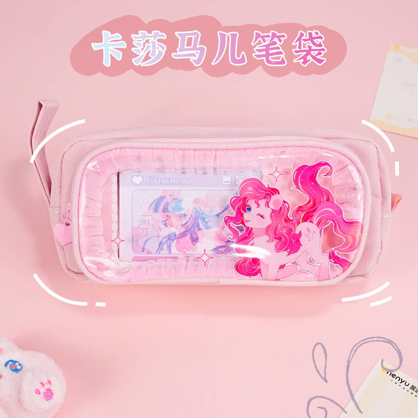 晨语笔袋2025新款女孩小马宝莉痛包笔袋小学女生铅笔盒可拆卸镭射卡痛层大容量透明文具收纳一二年级女童笔袋