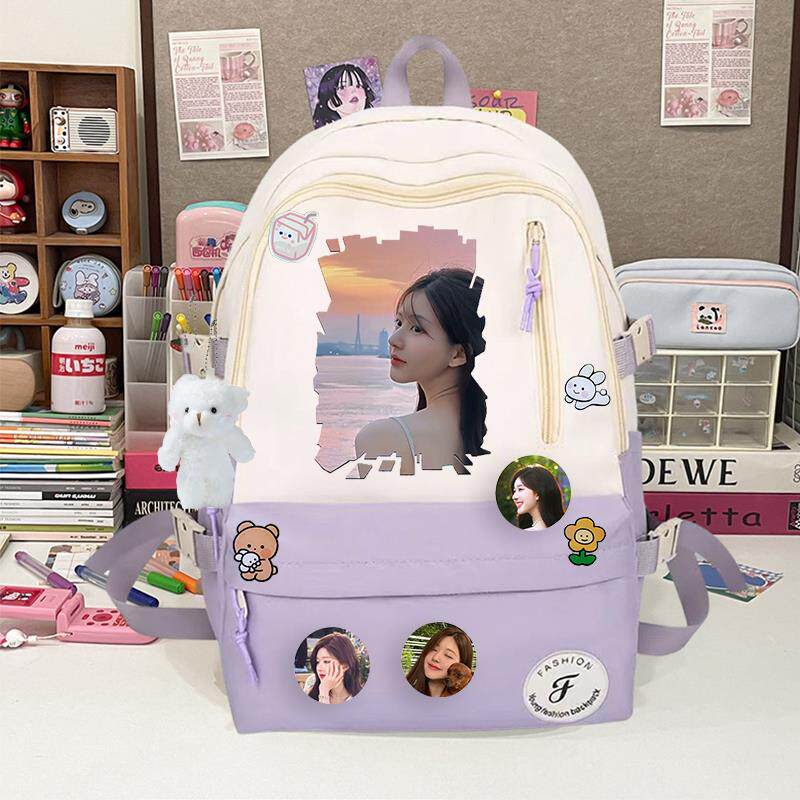 赵露思书包大容量学生素紫高颜值双肩包明星百搭印花轻便耐用背包