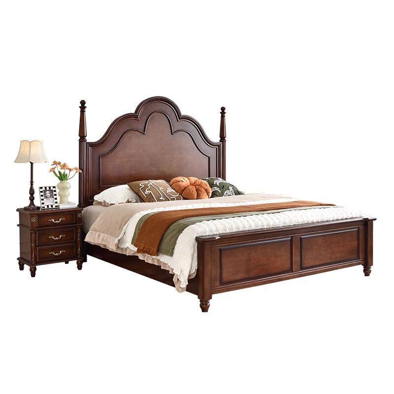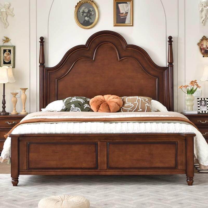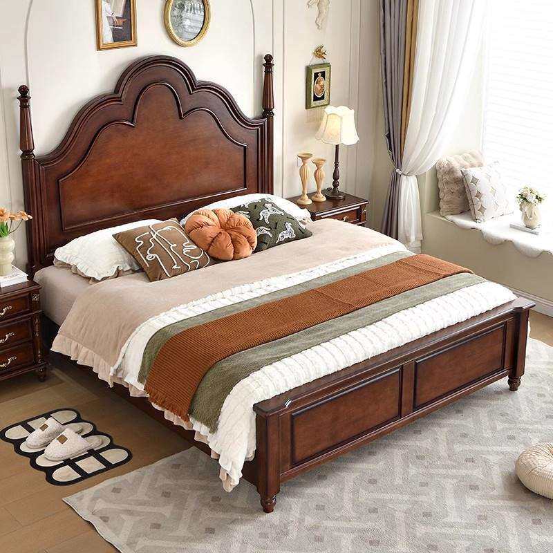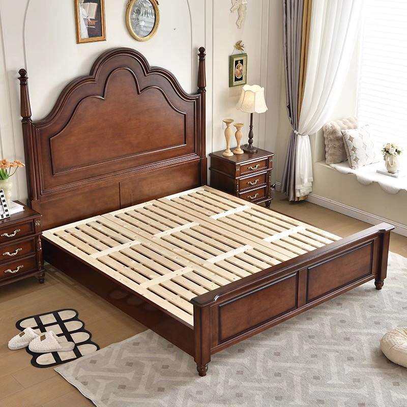 美式乡村风格高床头罗马柱子网红安娜主卧室双人结婚储物全实木床