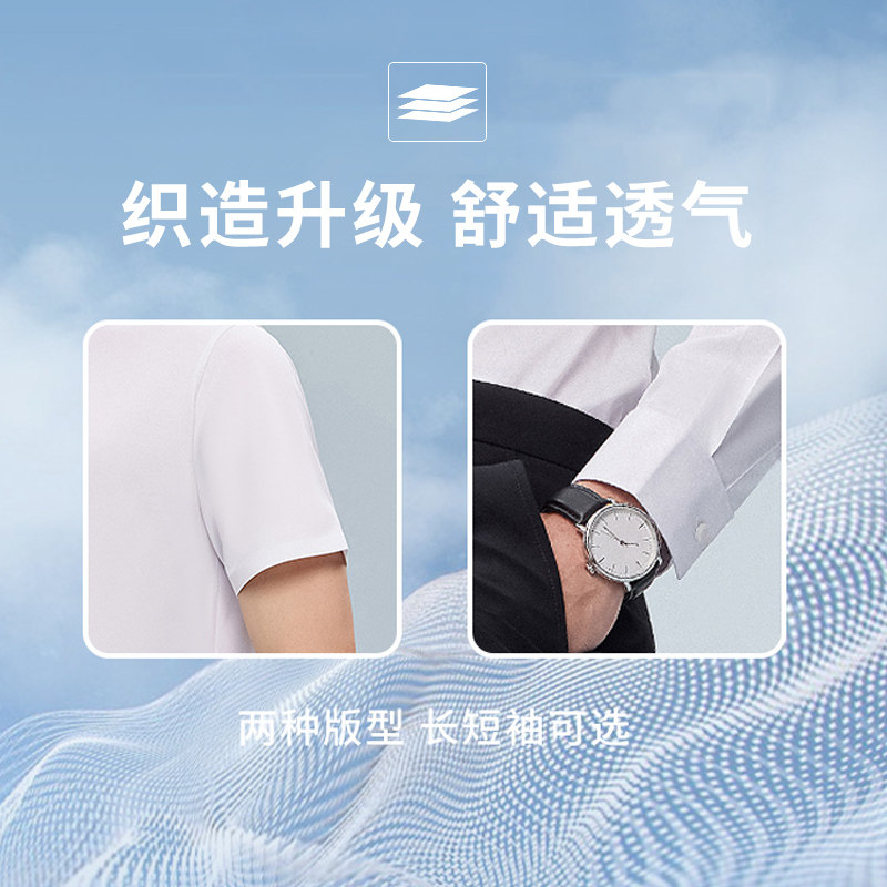 【云感衬衫】金利来春夏新款莫代尔弹力抗皱男士商务长袖白色衬衣