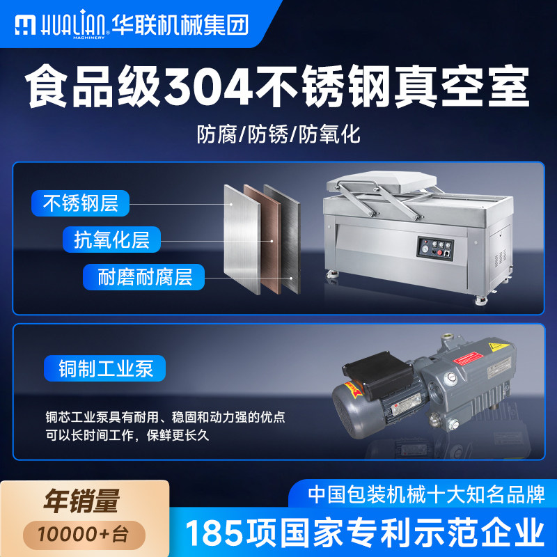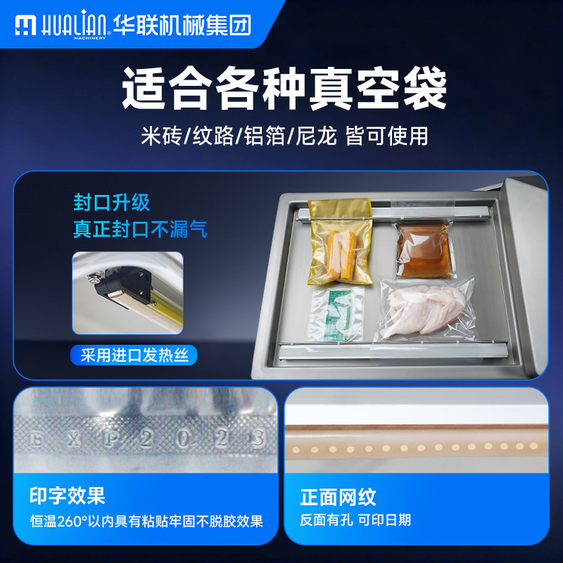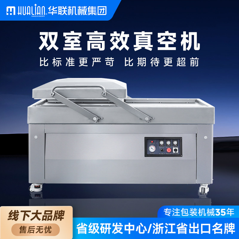 华联全自动双室真空包装机自动商用工业用干湿两用食品粽子月饼鸡鸭肉充气印字定制HVC双室真空机