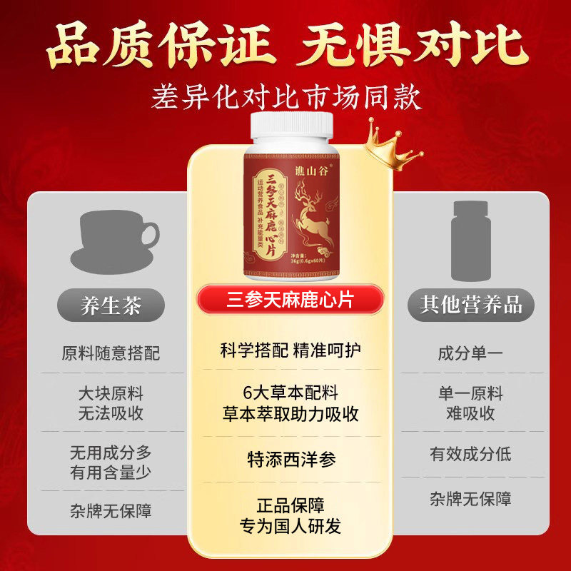 三参天麻鹿心片官方旗舰店正品露的功效直播同款草本萃取山谷健康