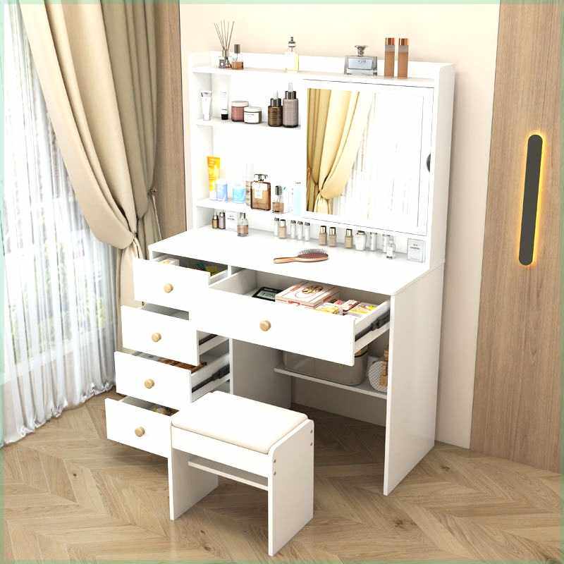 梳妆台卧室现代简约小户型化妆台收纳柜一体多功能化妆桌隐藏镜子