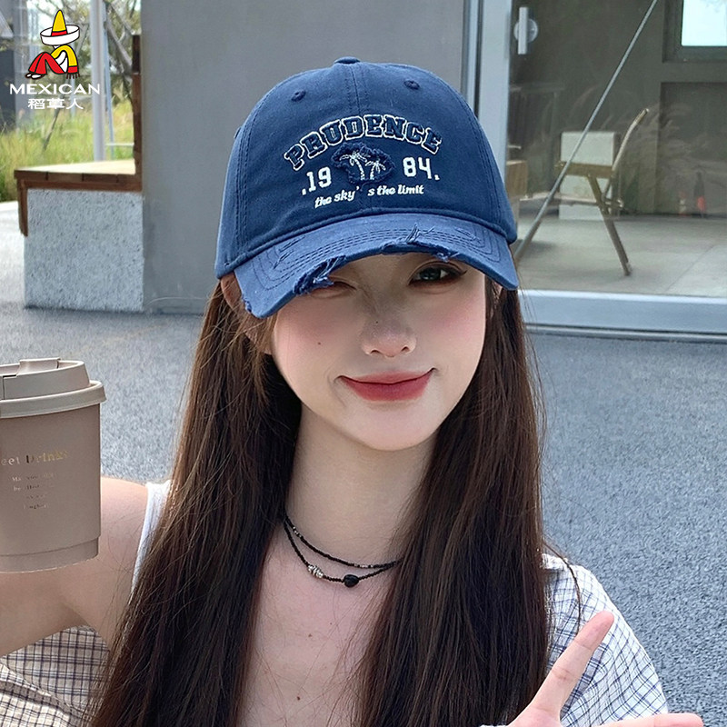 稻草人韩版刺绣字母棒球帽男女软顶牛仔布水洗遮阳鸭舌帽夏季防晒