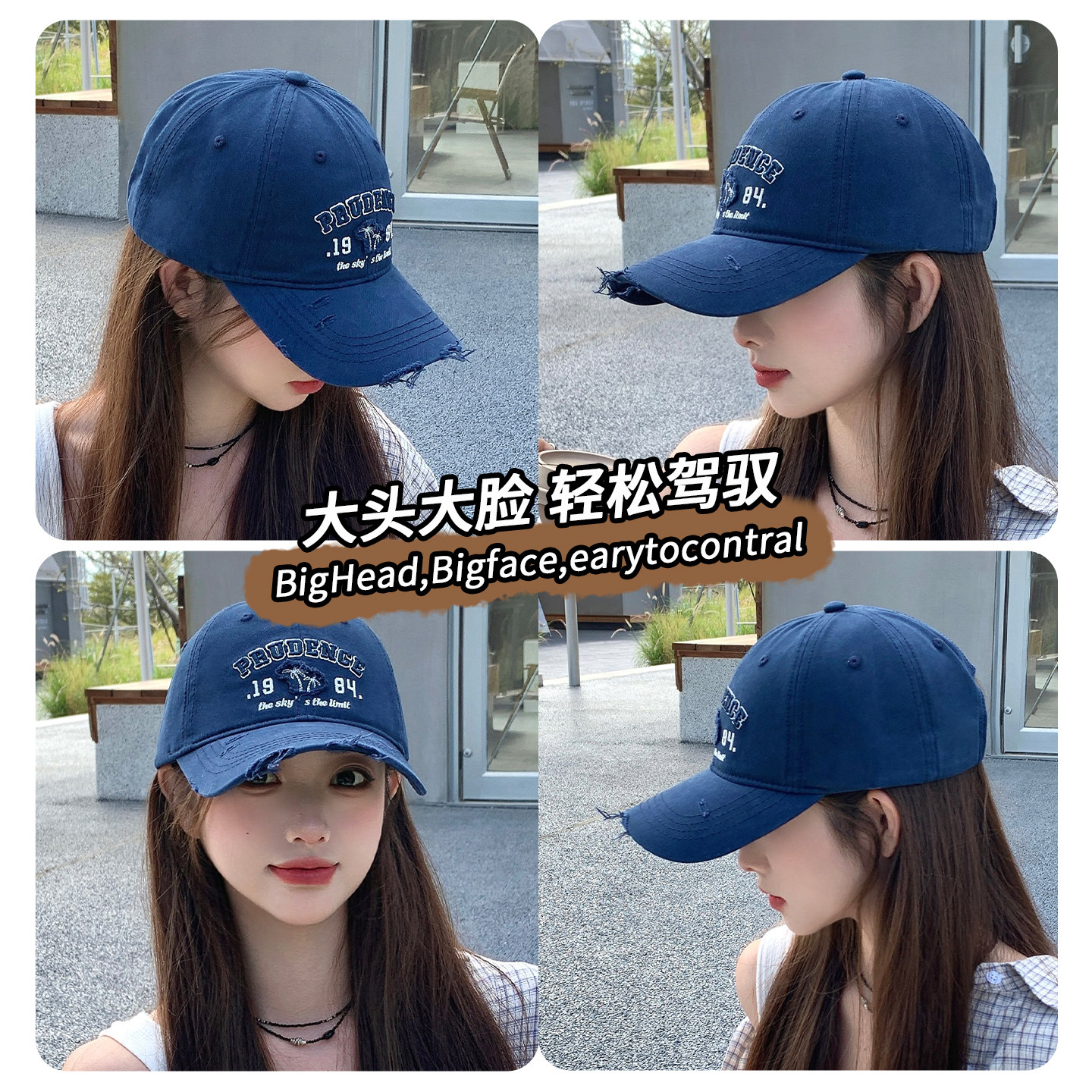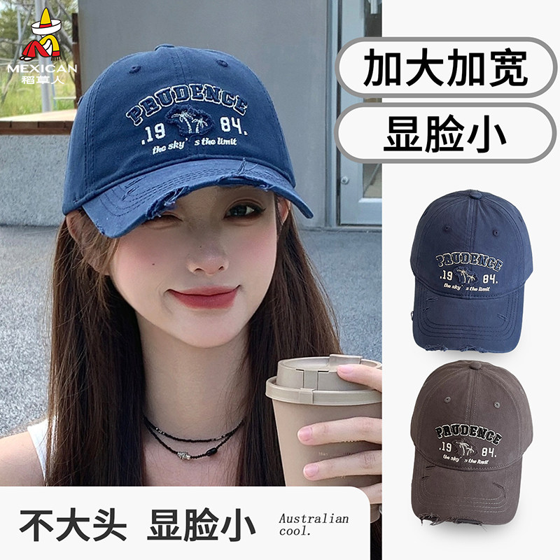 美式复古字母灰色棒球帽女高级感宽檐大头围显脸小百搭鸭舌帽子男
