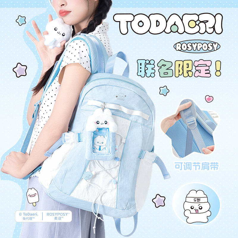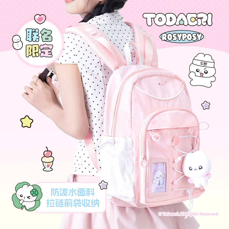 「赠娃偶挂件」RosyPosy柔设兔代理书包2026新款初中女生轻便韩系双肩包女高颜值ins小众限定可爱抽绳背包