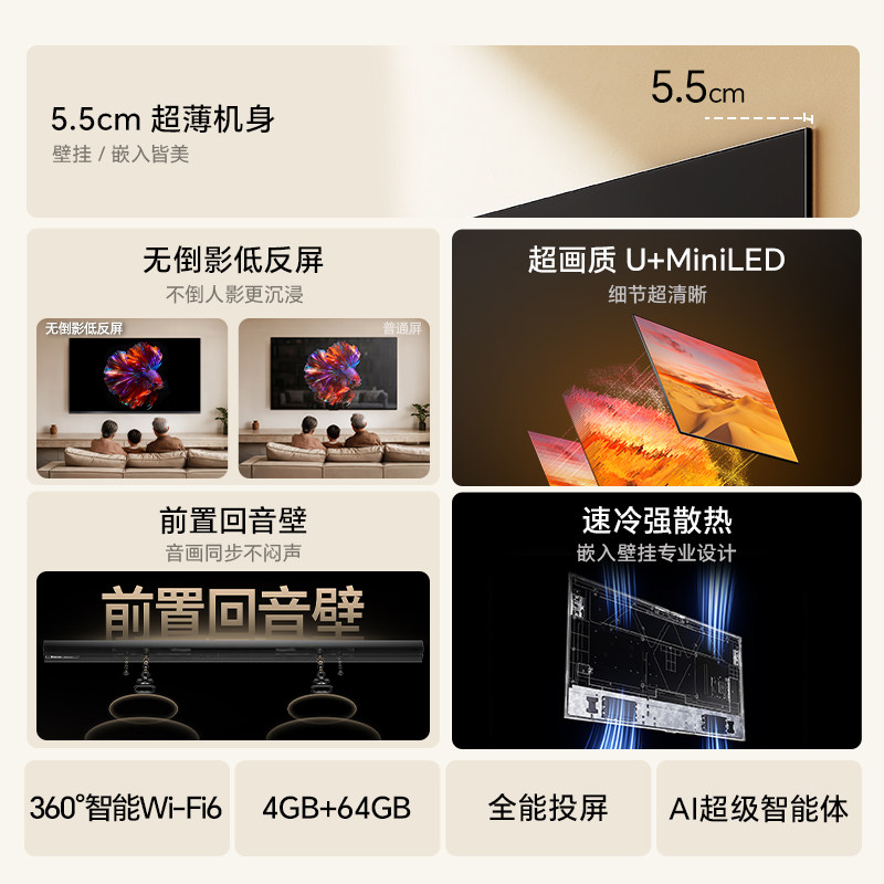 海信大薄荷E52Q 65英寸 AI指向遥控 柔光防眩屏 MiniLED电视机122