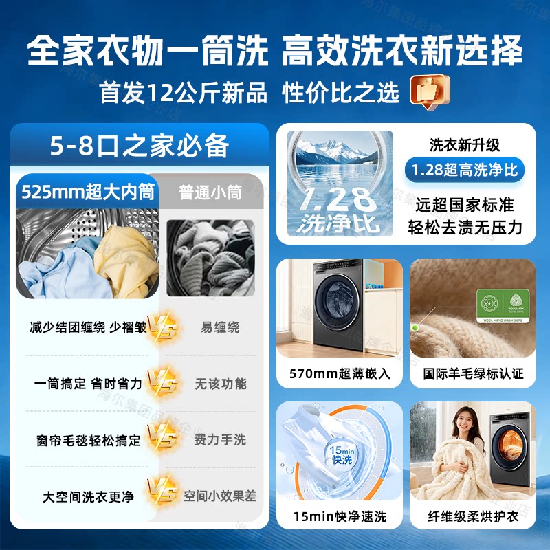 海尔滚筒洗衣机大容量13/12公斤超薄家用全自动洗烘一体58E