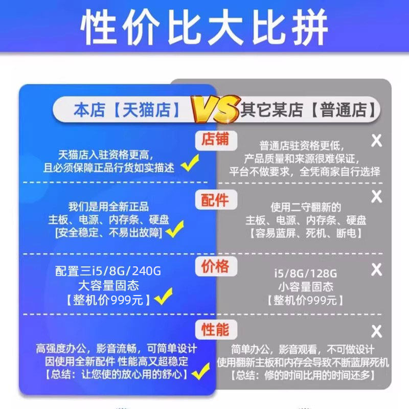 英特尔酷睿i7/i5/i3商务办公台式机电脑主机家用游戏组装机企业公司客服整机剪辑美工平面设计师专用主机全套