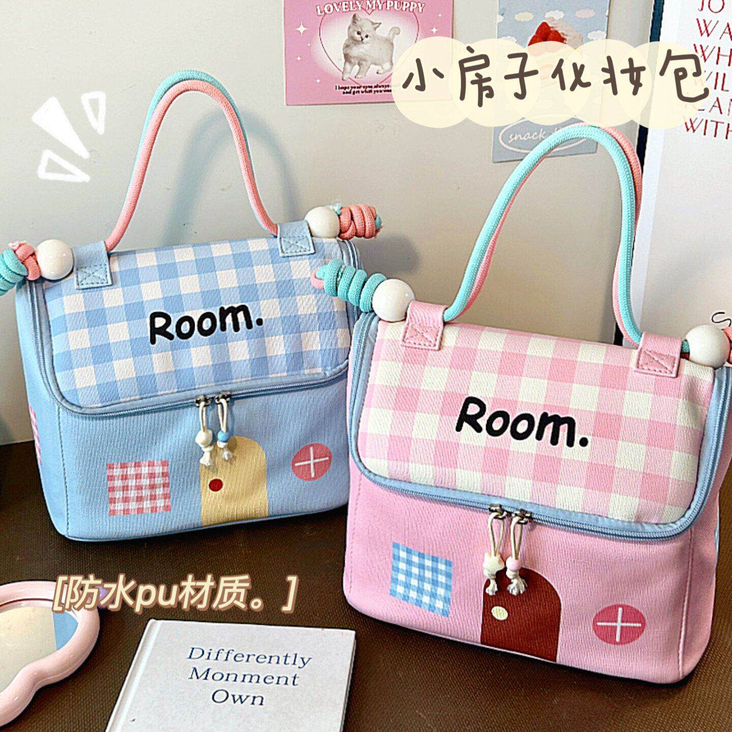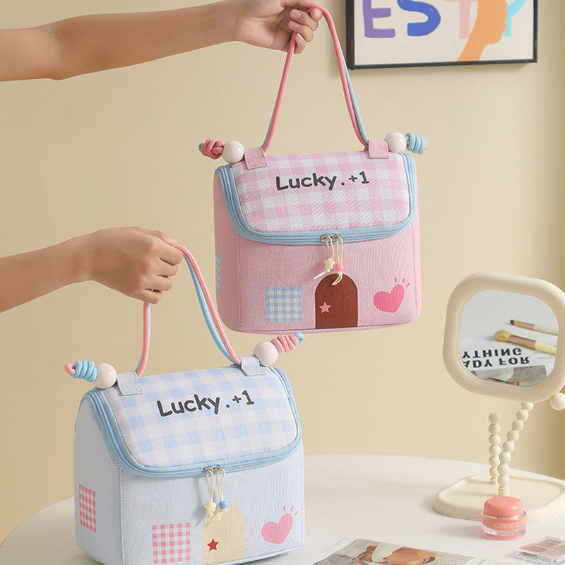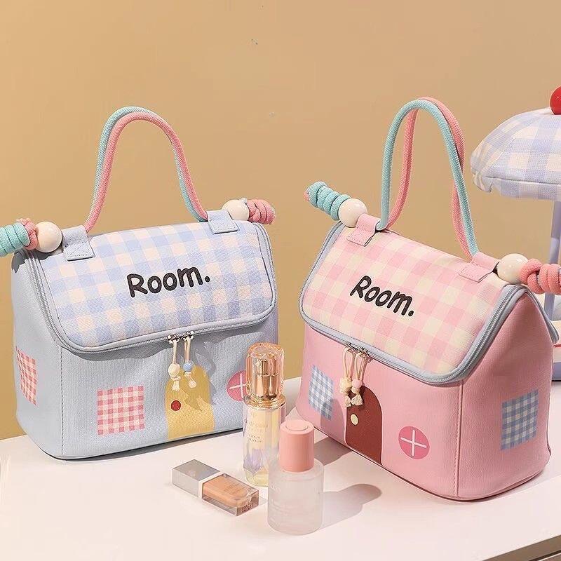 幸运小房子化妆包多巴胺大容量防水旅行便携收纳袋手提包多规格