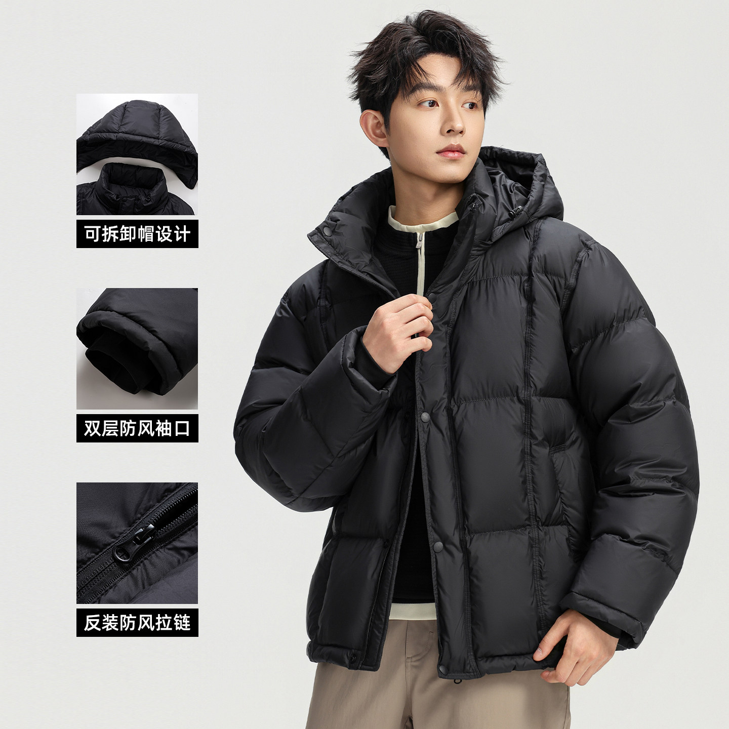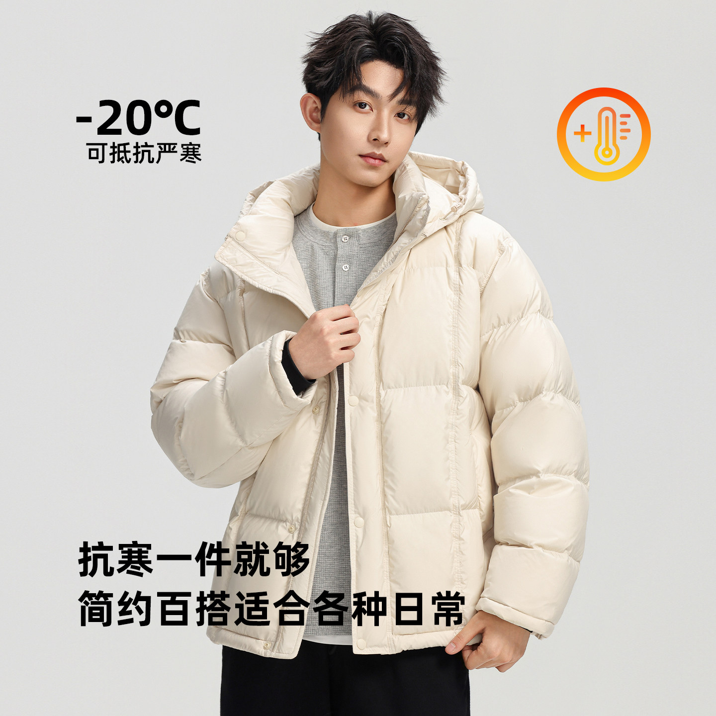羽绒服男连帽短款冬季90鸭绒加厚保暖外套简约百搭面包服休闲男装