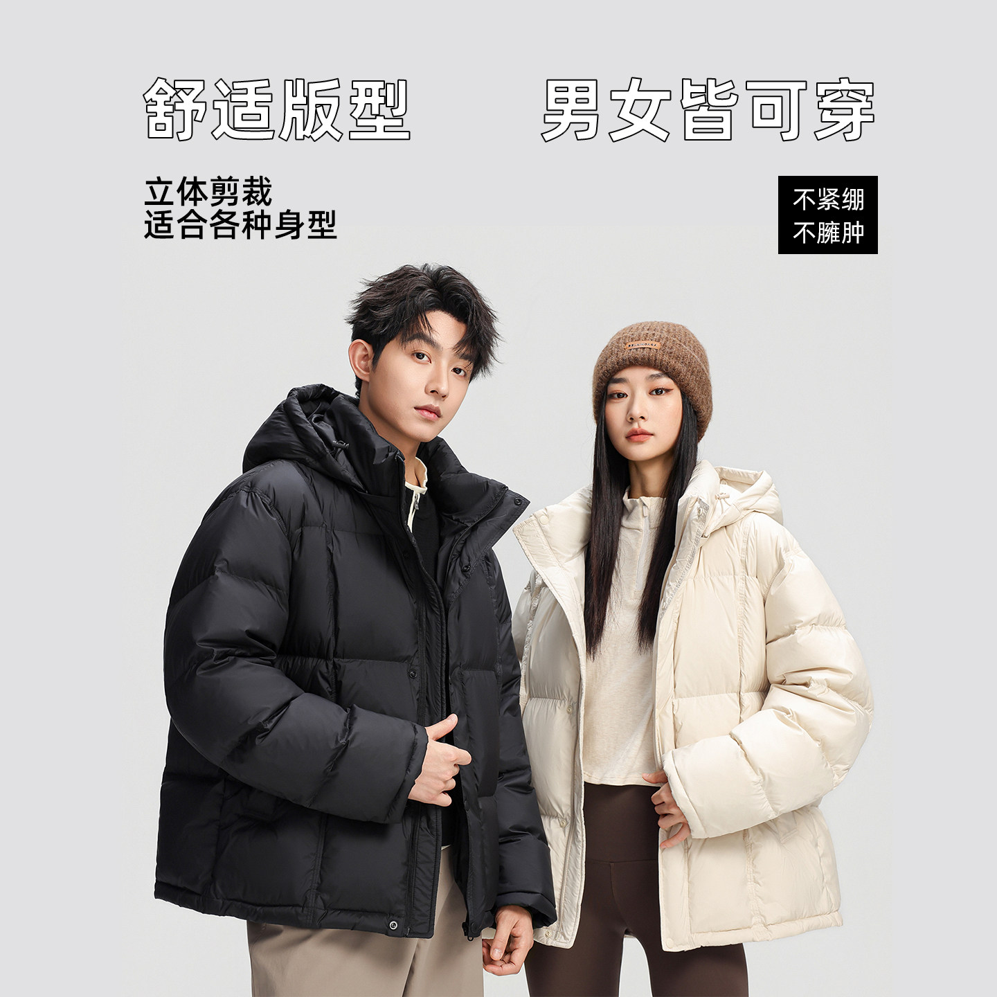 王一博明星同款鸭鸭羽绒服男女短款冬季情侣加厚连帽工装鸭绒外套