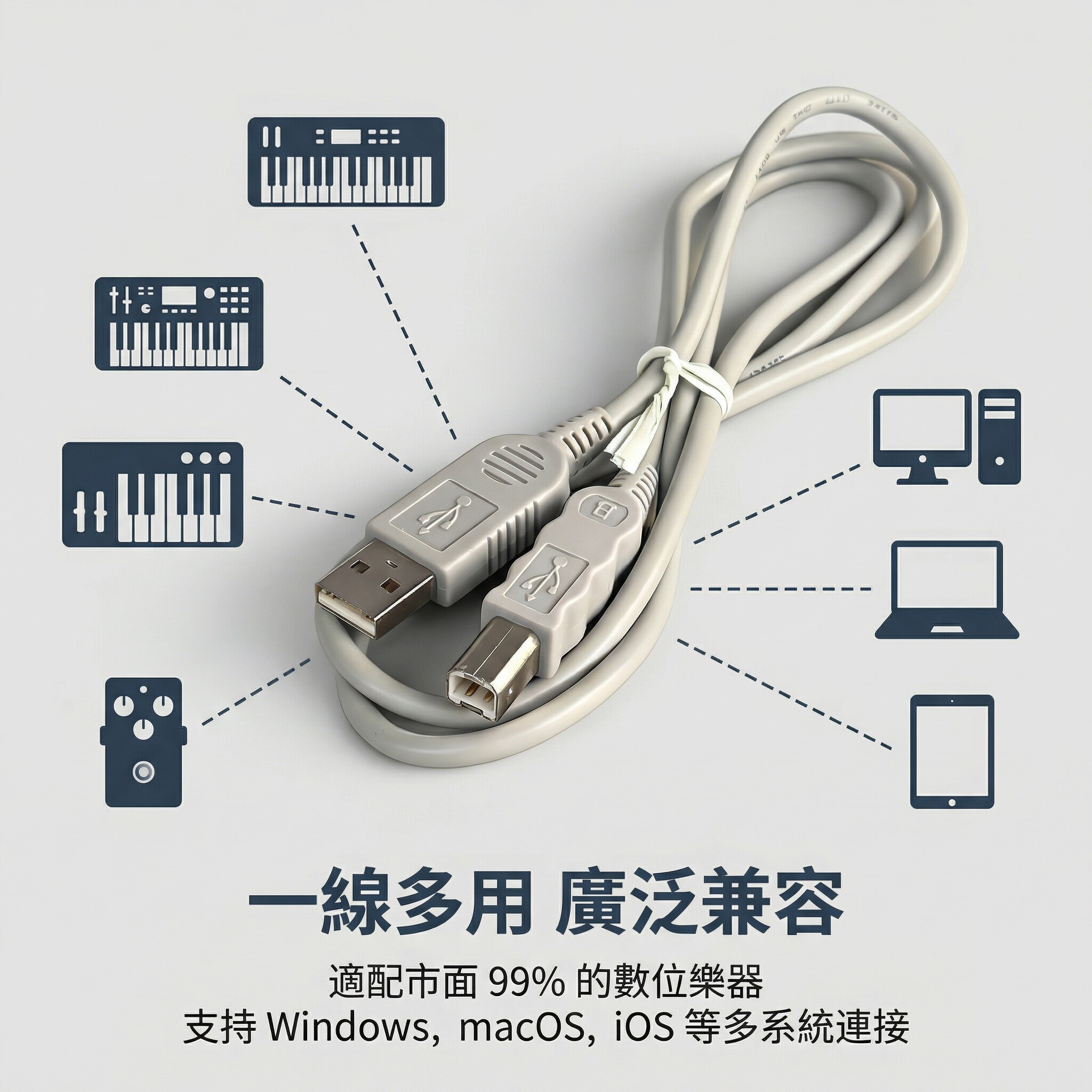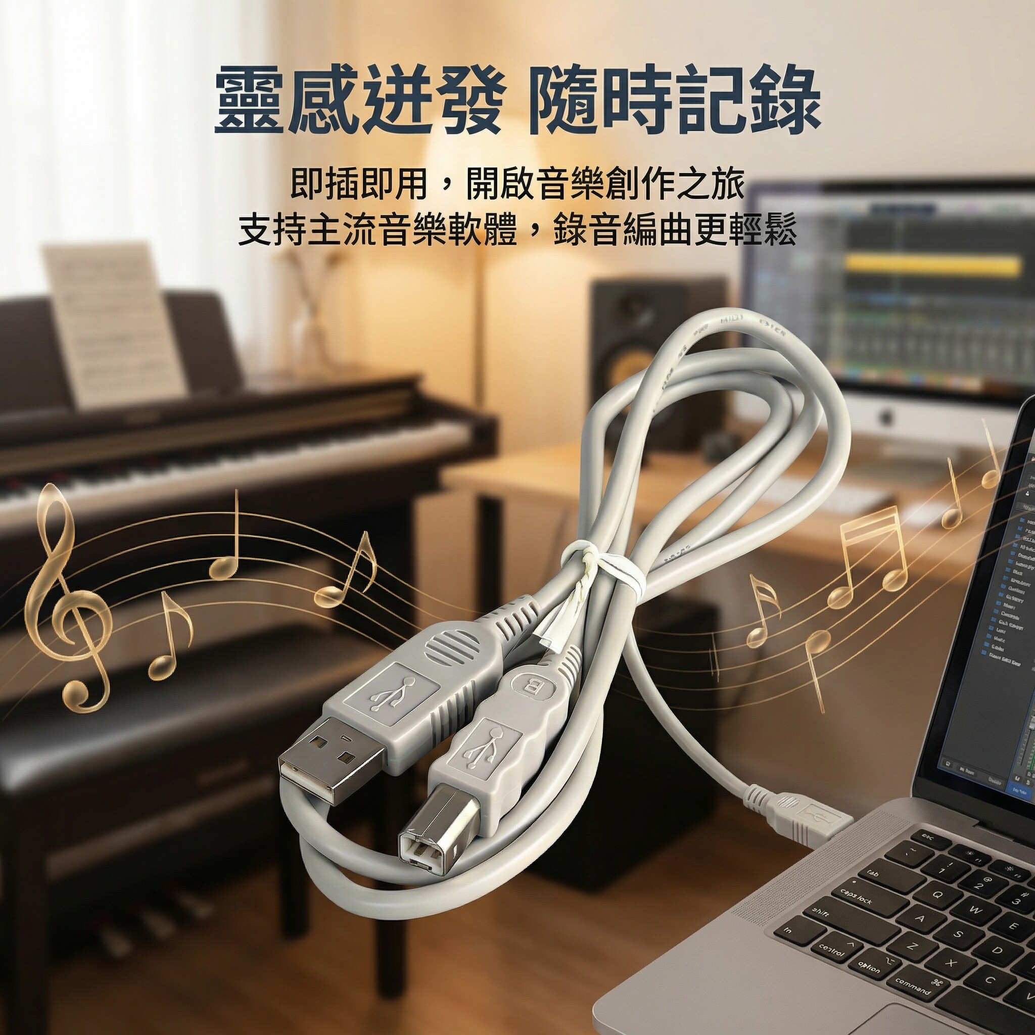 适用midiplus midi键盘连接线USB A to B 方口电脑数据传输与供电