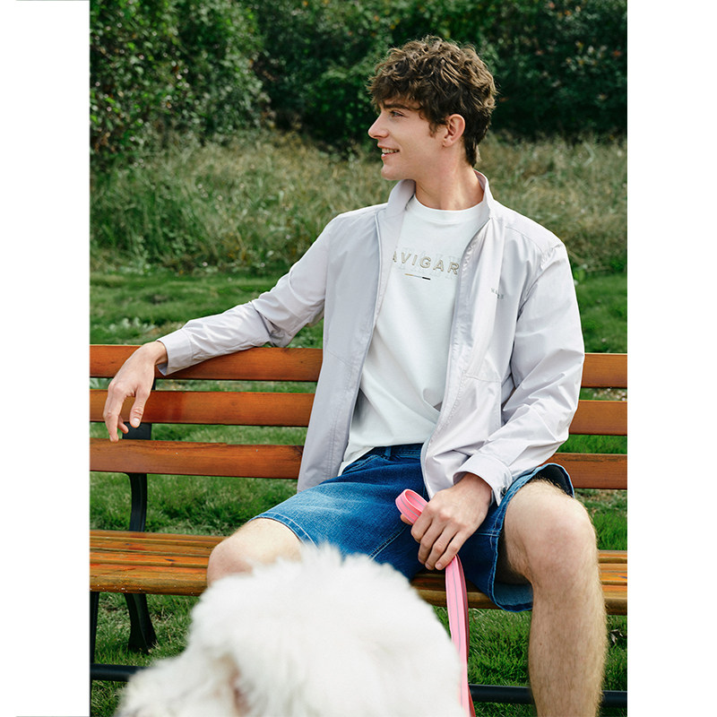 Navigare意大利小帆船灰色时尚立领夹克男士新款户外防晒衣外套