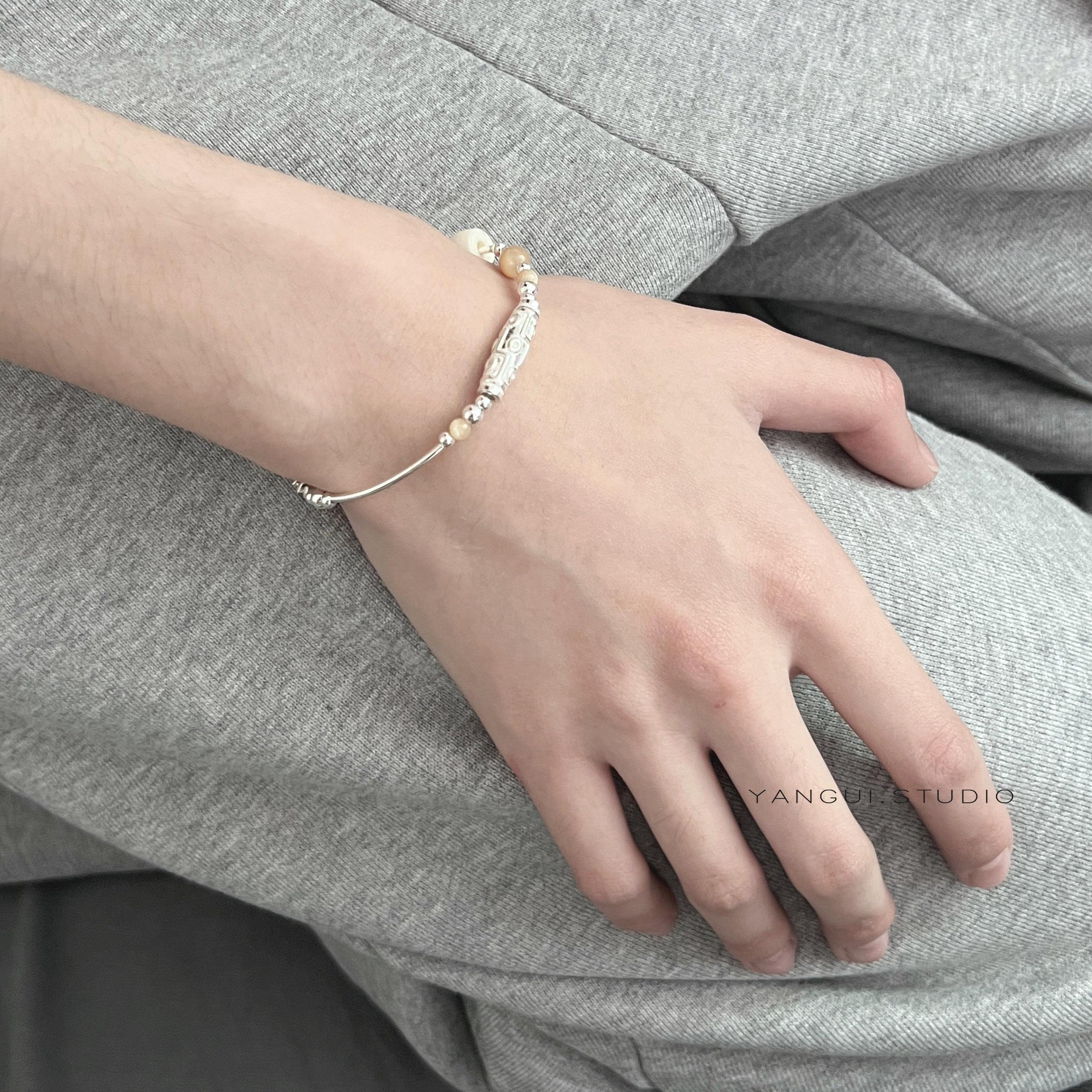 Yangui原创「守 春」纯银925天珠手链天然石复古新中式情侣手饰女