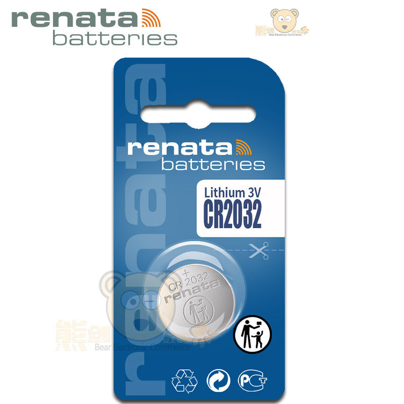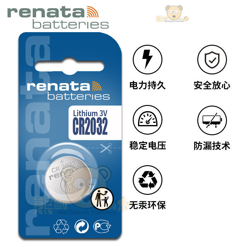Renata瑞士CR2032纽扣电池3V锂电子电视盒子体重秤主板CMOS适用罗氏强生血糖仪速腾迈腾福特汽车钥匙遥控器