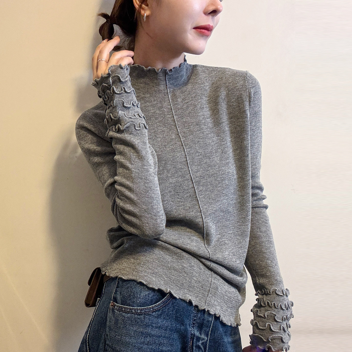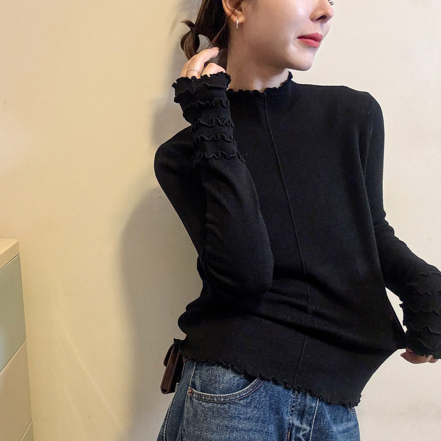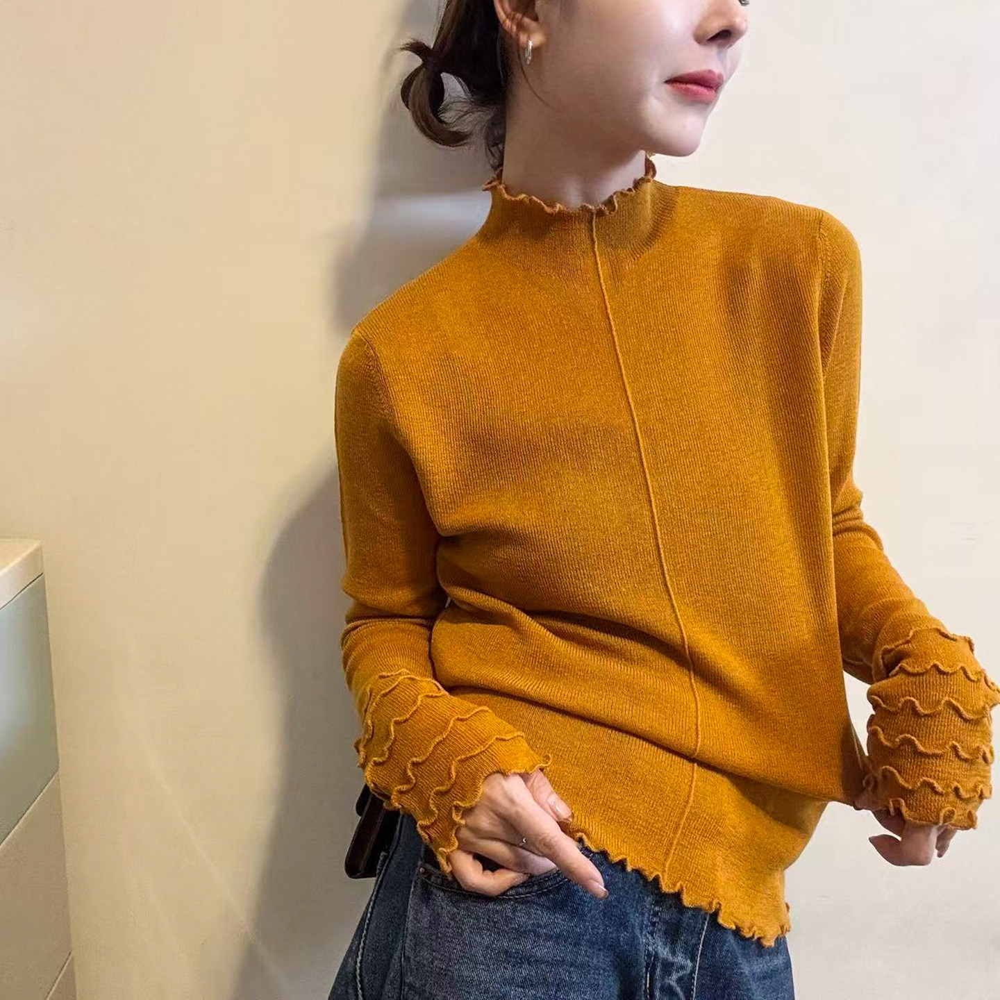 木耳边半高领羊毛针织衫女欧洲站2025冬装新款欧货女装打底小衫潮