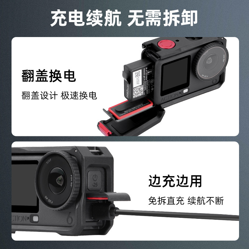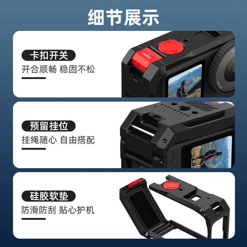 Flymile适用大疆Osmo Action6金属兔笼横竖拍保护边框运动相机拓展款防磕碰安全保护壳金属磁吸快拆底座配件
