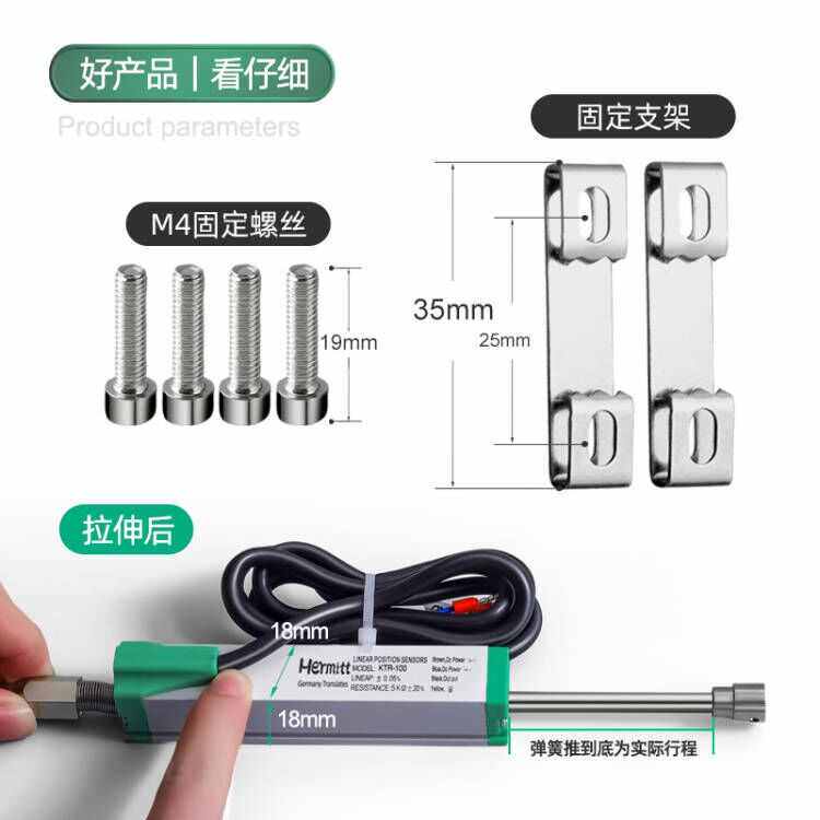 全新微型自复位式弹簧位移回弹传感器式式拉杆直线电子尺KTR