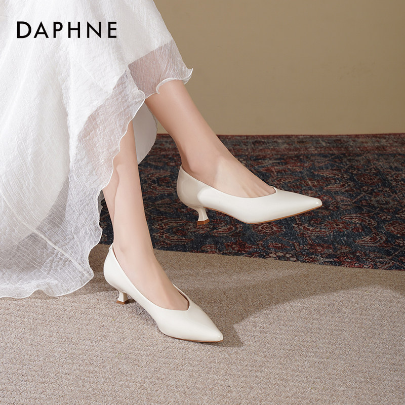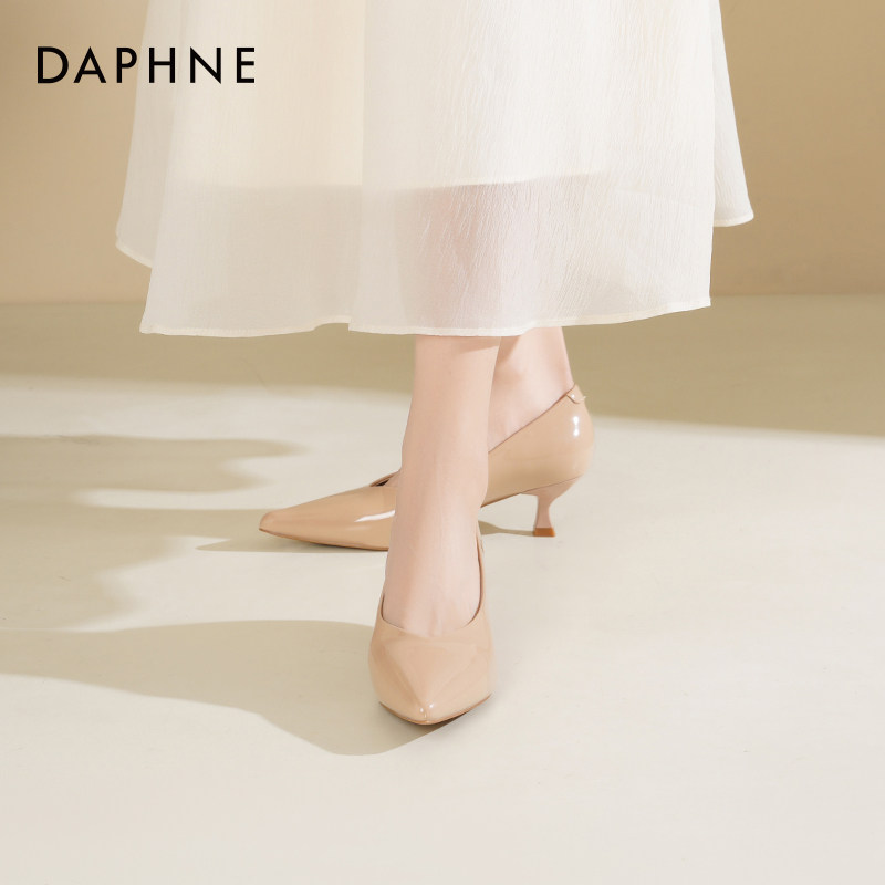 达芙妮裸色高跟鞋女2026新款春季低跟通勤女鞋气质尖头法式单鞋女
