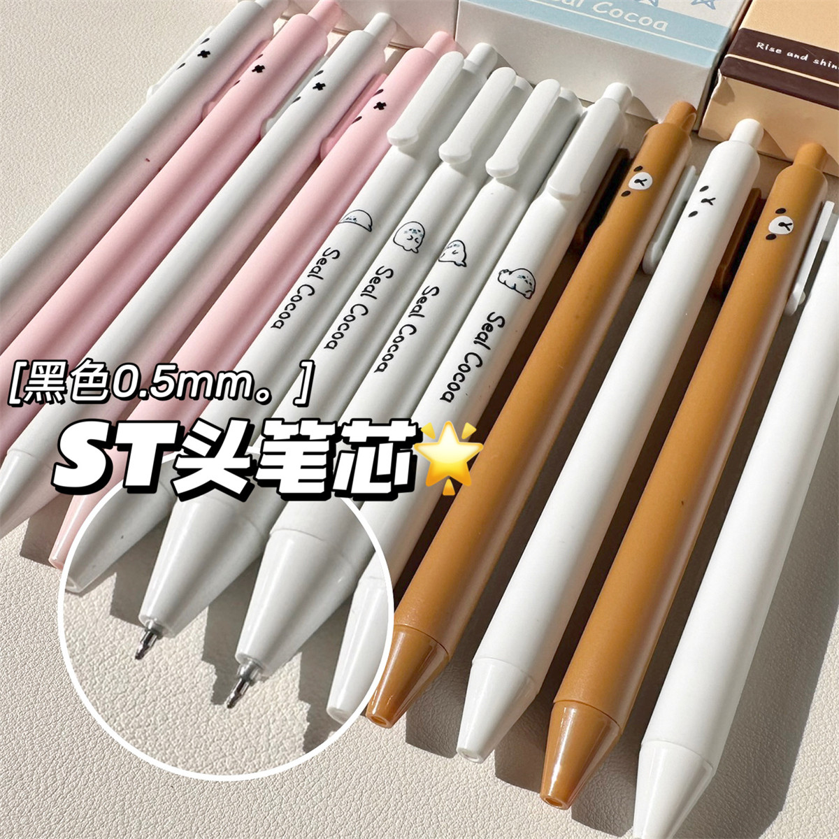 国风桶装刷题笔速干顺滑黑笔高颜值按动中性笔ST0.5黑色笔芯水性圆珠笔小学生专用考试笔非按斤卖碳素签字笔