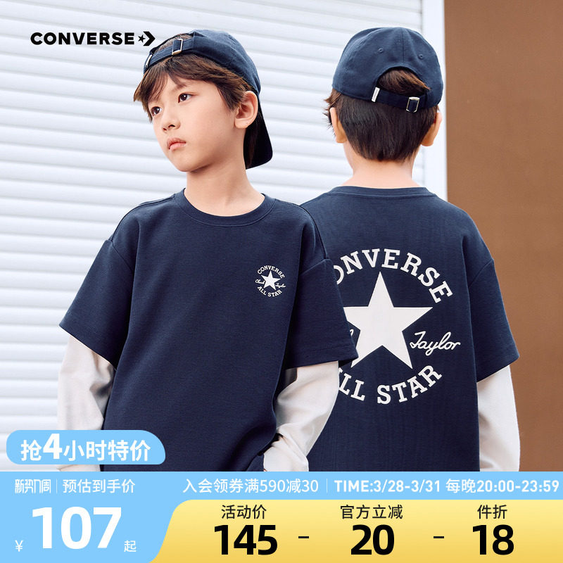 匡威童装男童长袖T恤青少年春季假两件上衣打底衫宽松圆领休闲