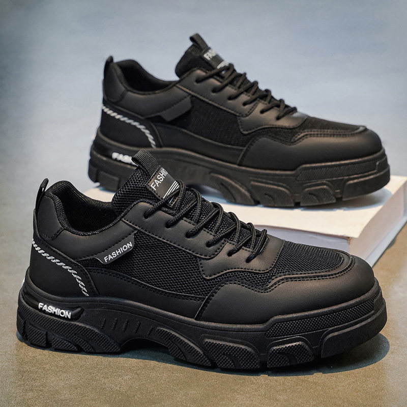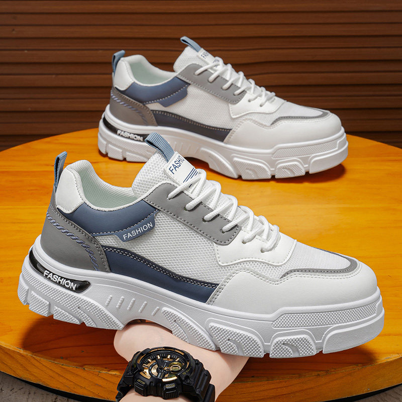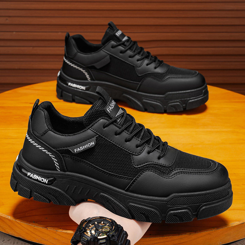 男鞋春季潮流百搭网面休闲白色工装板鞋青少年运动厚底小白鞋黑色