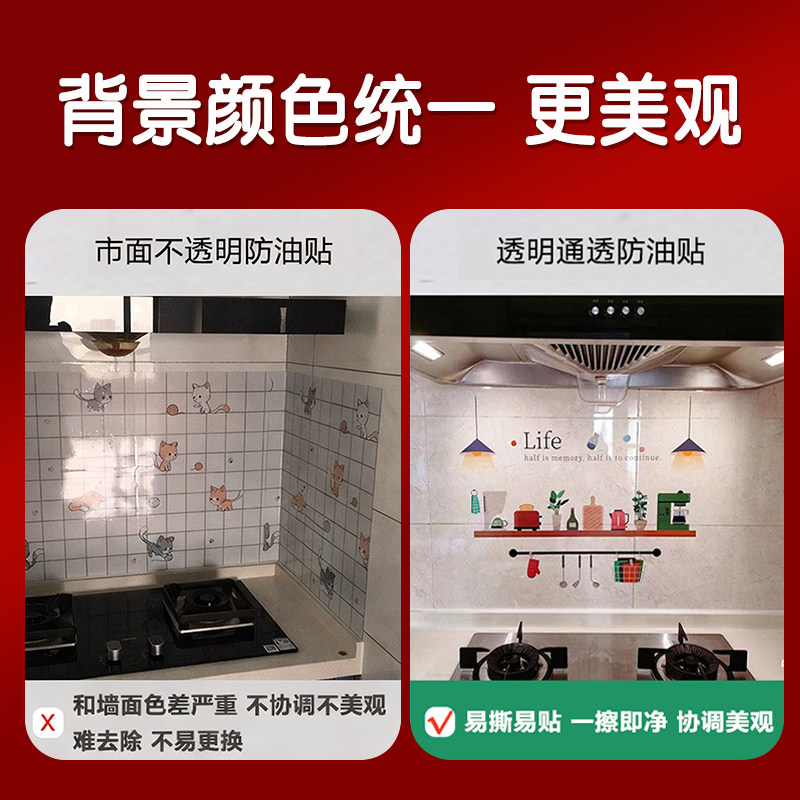 厨房防油贴纸灶台墙纸自粘加厚耐高温防水防污静电透明玻璃贴膜