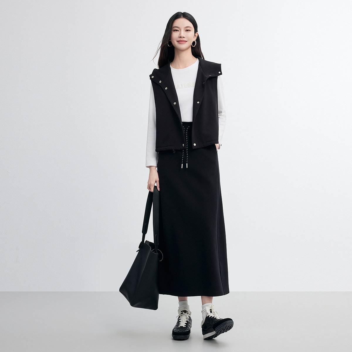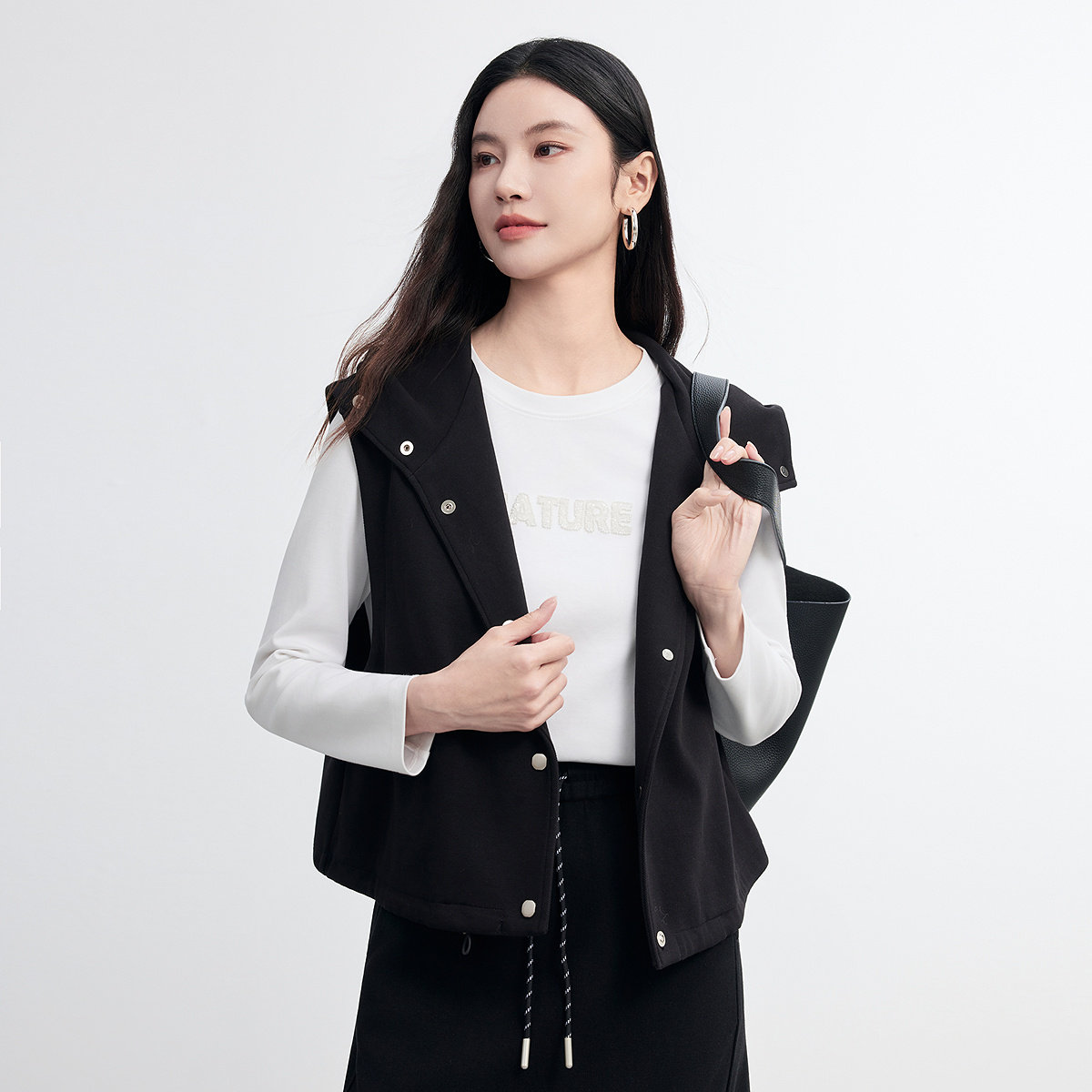 FINITY菲妮迪无袖马甲2026春新款黑色连帽休闲风百搭外套上衣女装