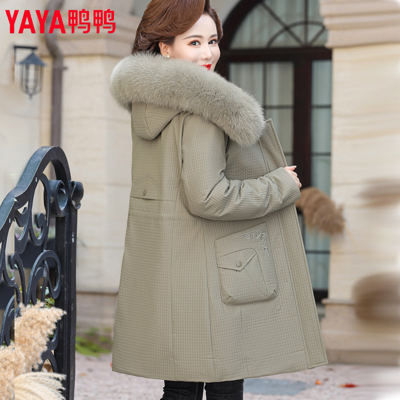 YAYA鸭鸭中年妈妈冬装羽绒服加厚狐狸毛领2025中老年女款保暖外套