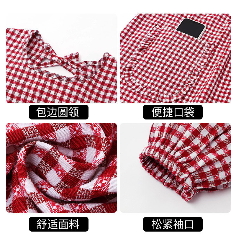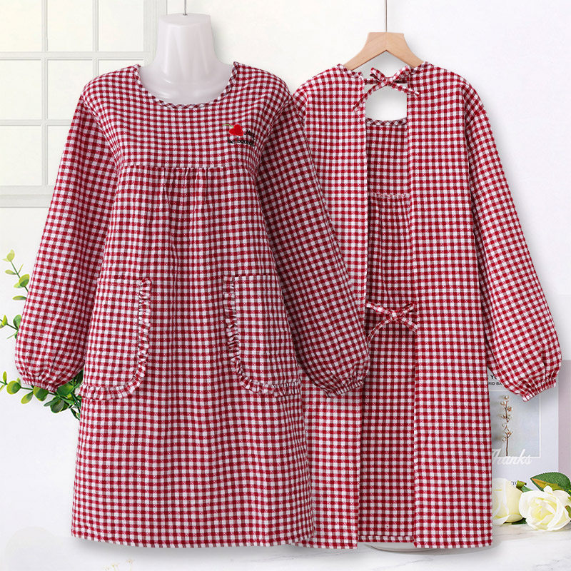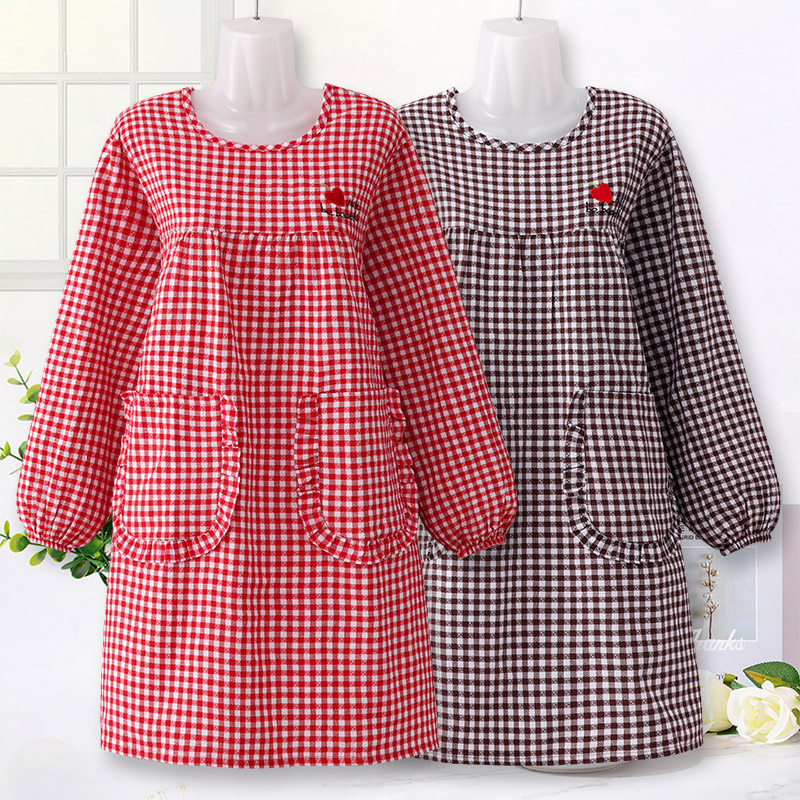 新款棉布耐磨围裙长袖厨房家用防污罩衣透气围腰做饭上班工作服女