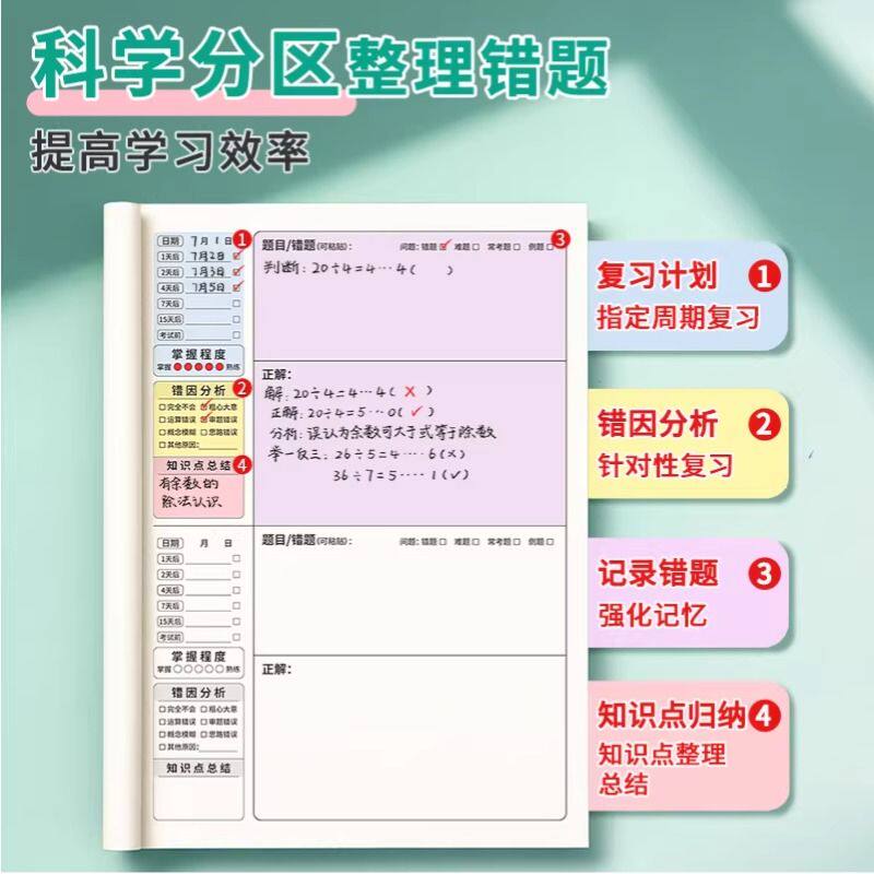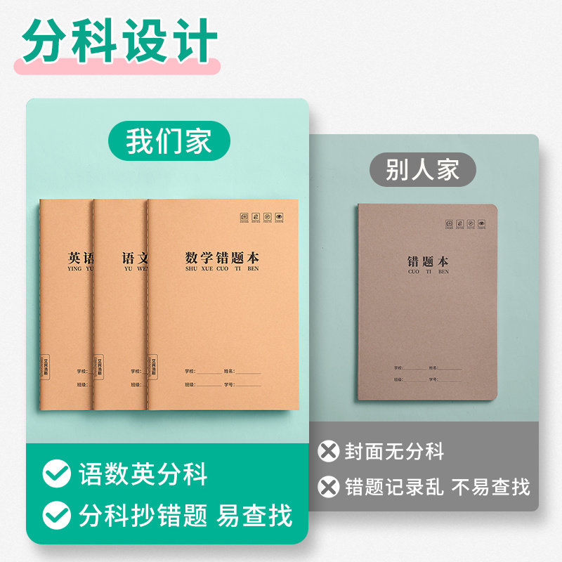 小学生专用错题本纠错本一年级二年级三四五六年级16K牛皮纸改错本数学语文英语实用型错题收集整理本订正本