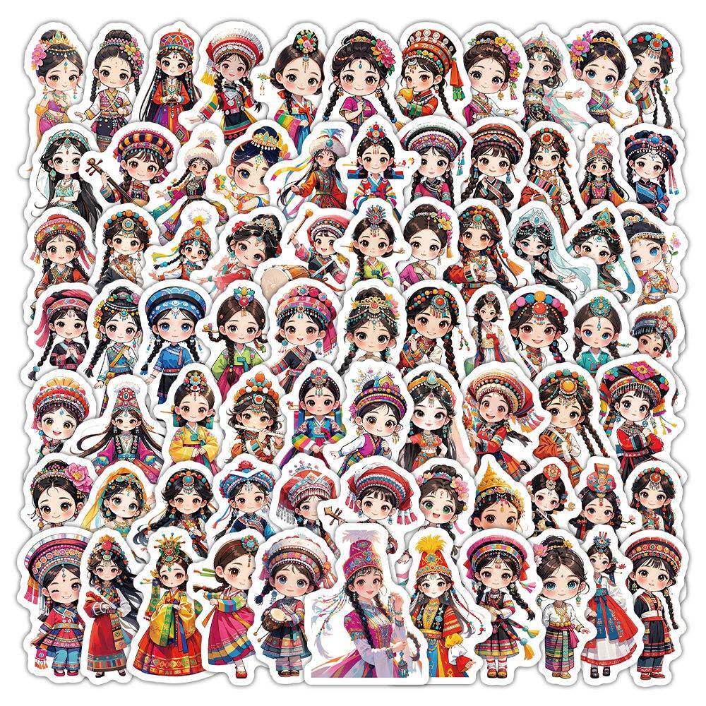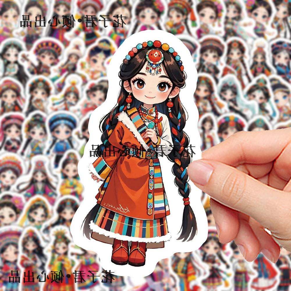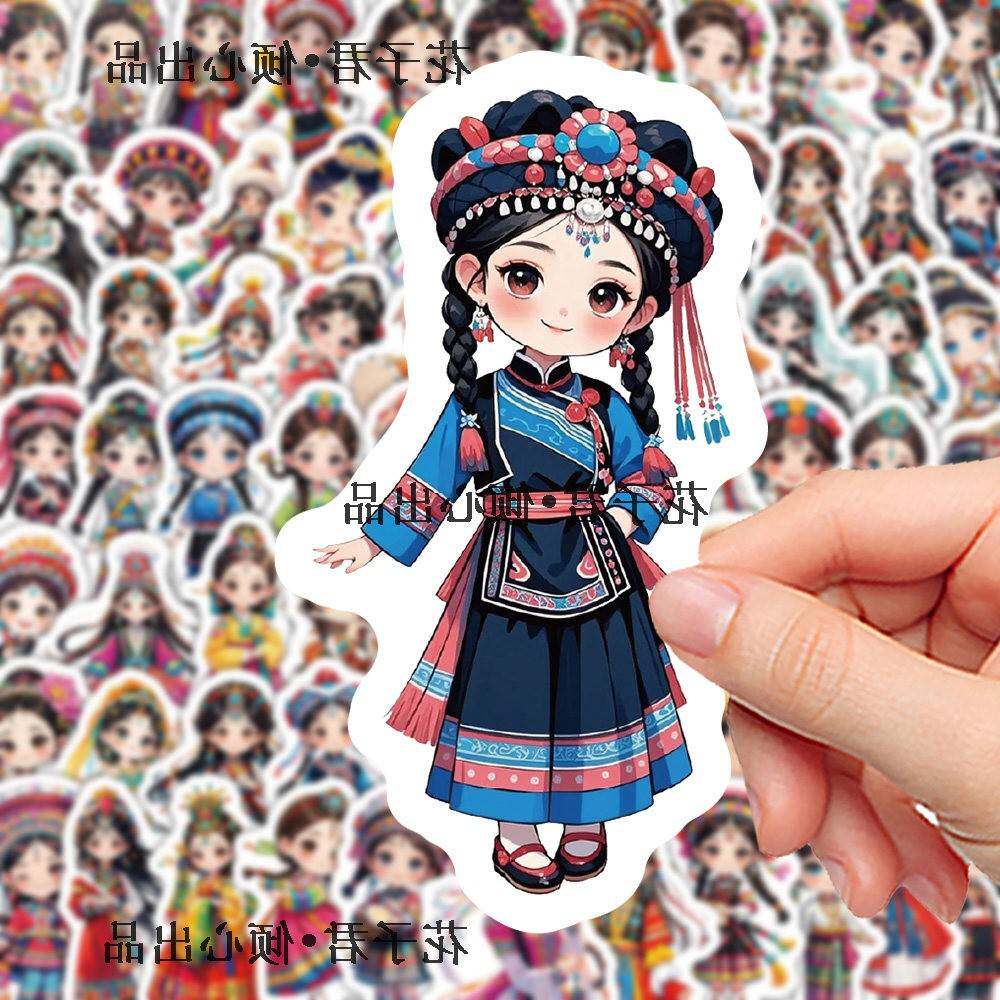 180张卡通民族女孩服饰贴纸Q版国风传统服饰插画手账素材贴画防水