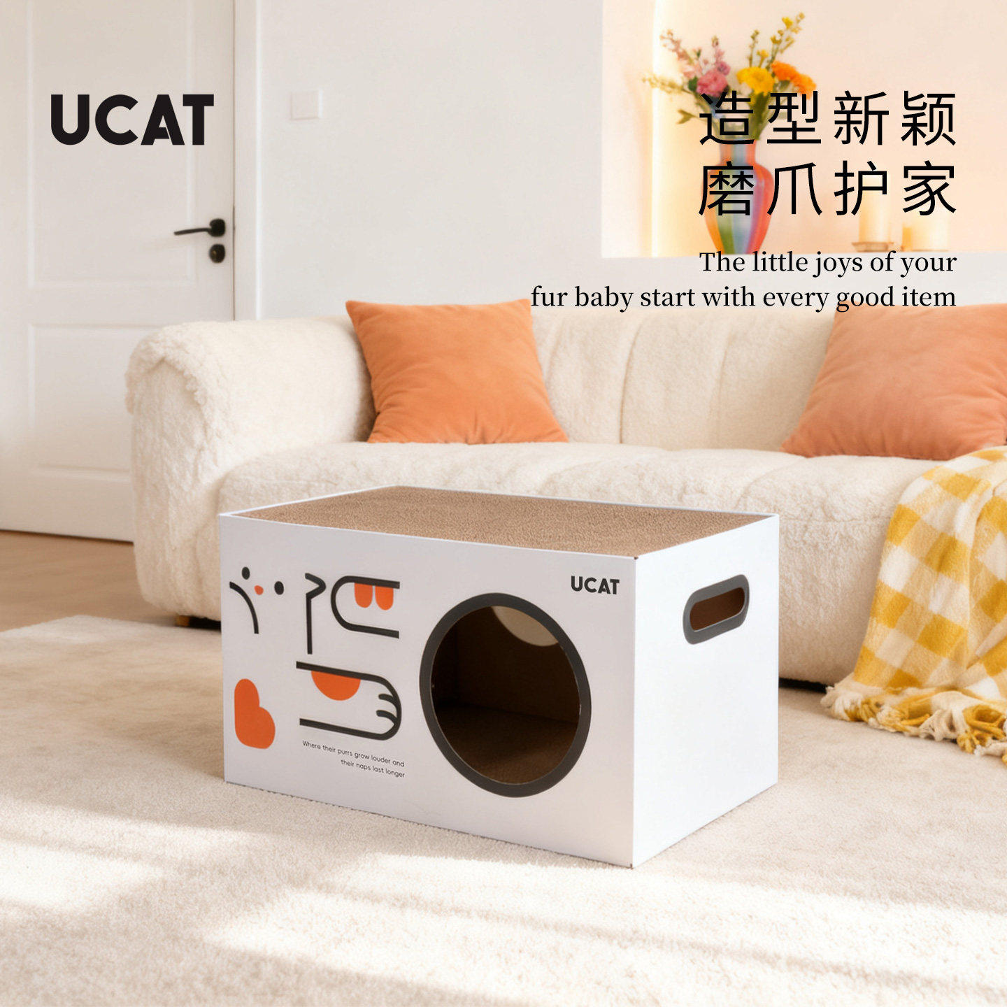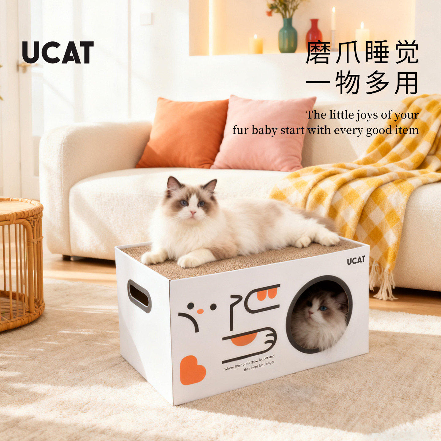 ucat猫窝双层瓦楞纸抓板玩睡一体多巴胺加大猫耐磨宠物睡床 |誊炼