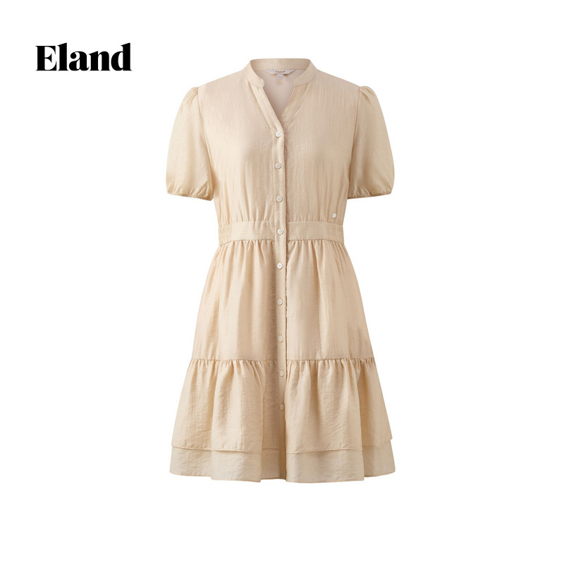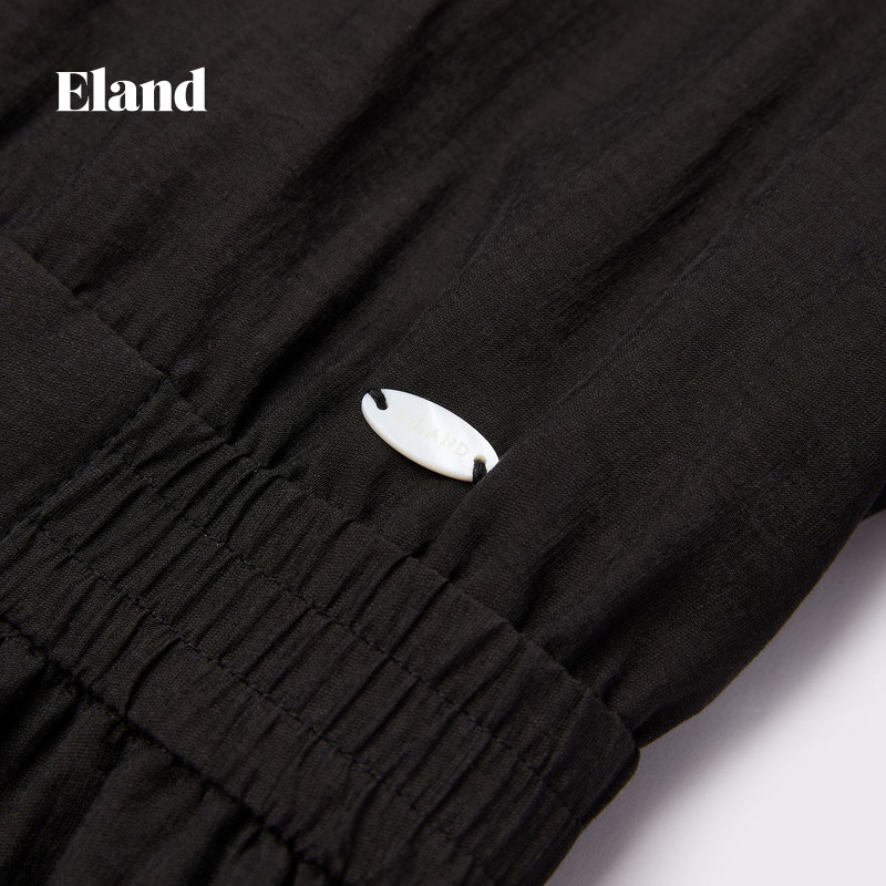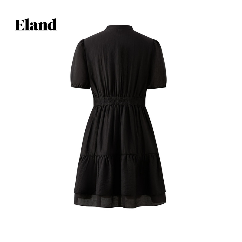 Eland衣恋连衣裙女纯色v领含莱赛尔轻薄袖口橡筋裙子2025夏季新款