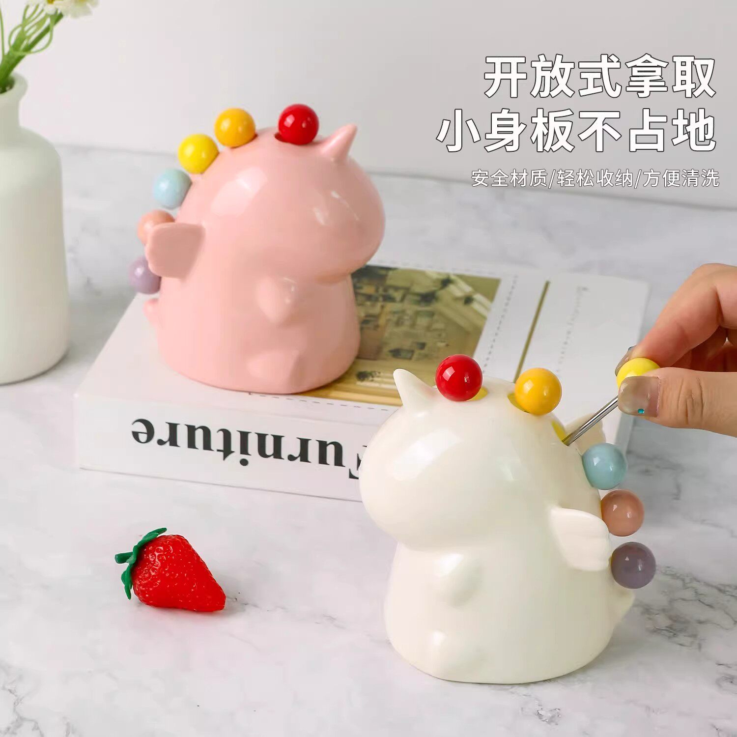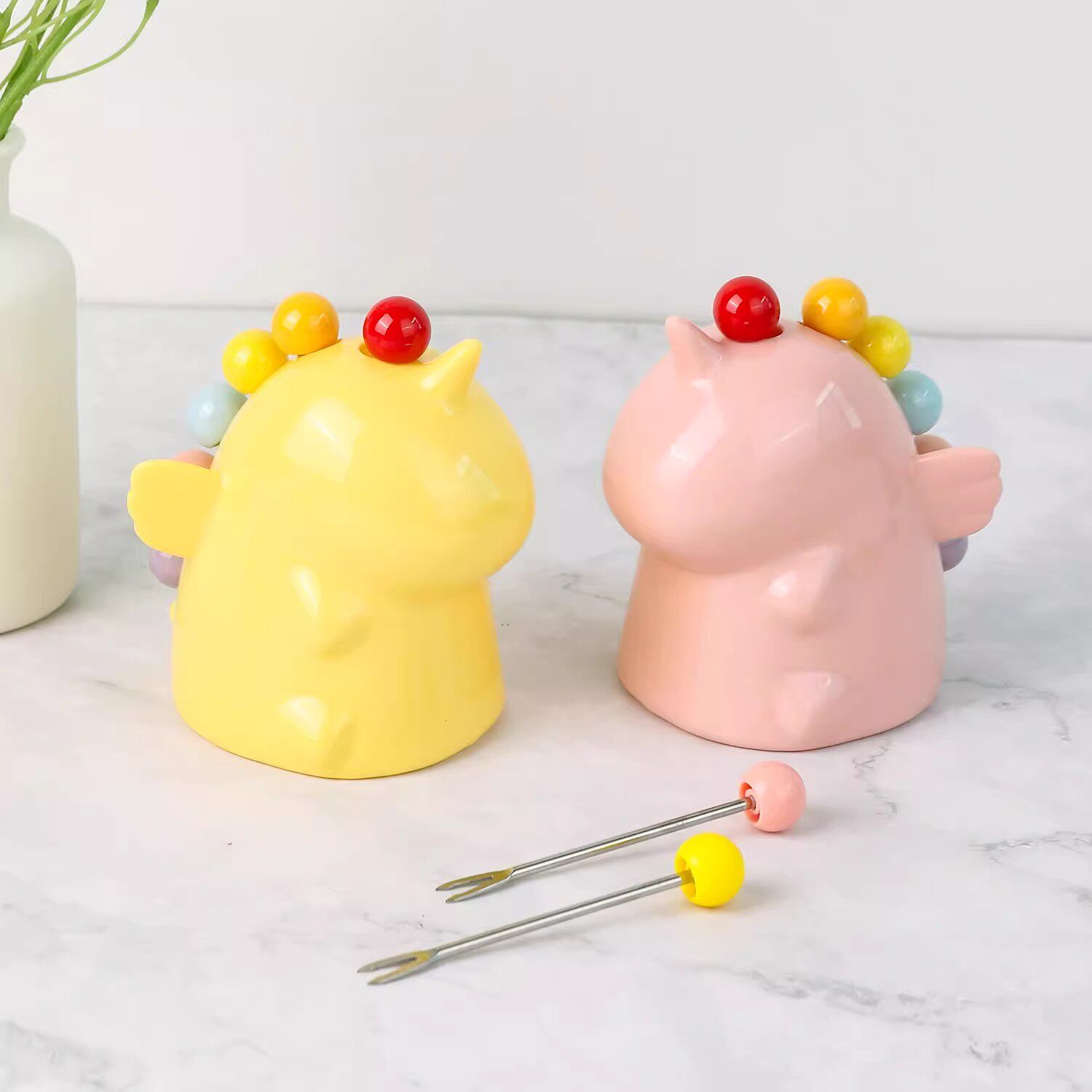 萌趣独角兽水果叉彩色收纳摆件奶油风女生生日礼物创意桌面装饰品