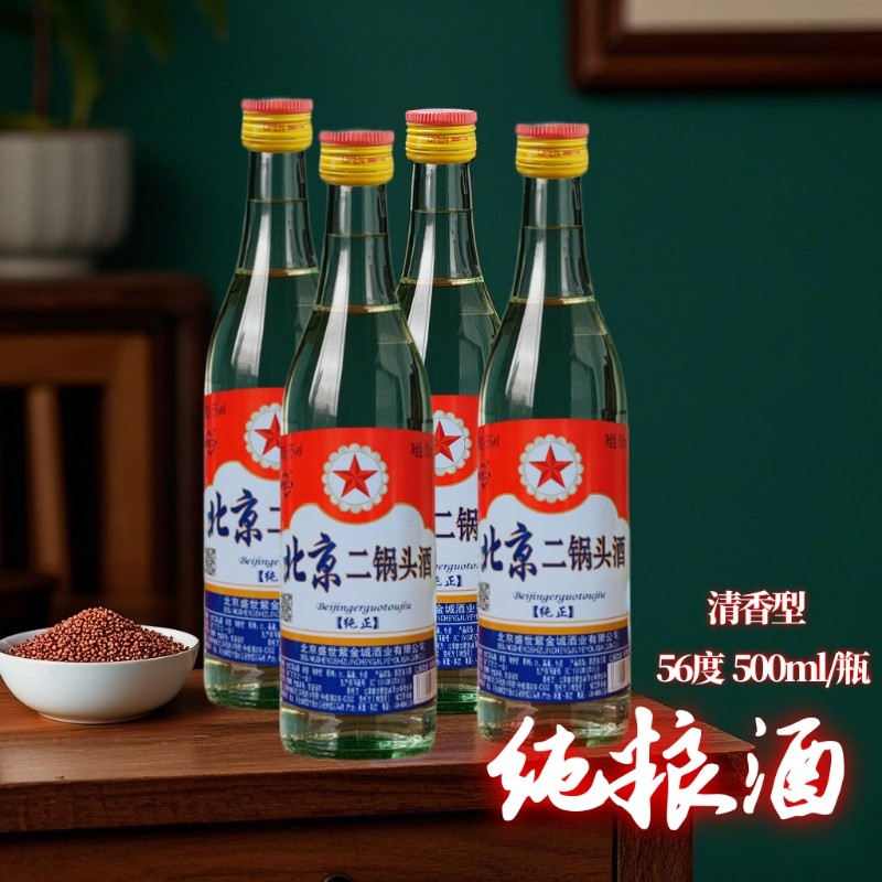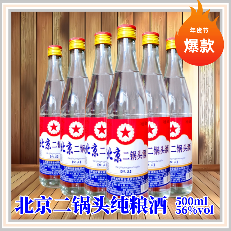 北京二锅头56度白瓶500ml清香高度白酒纯粮食酒固态法白酒口粮酒