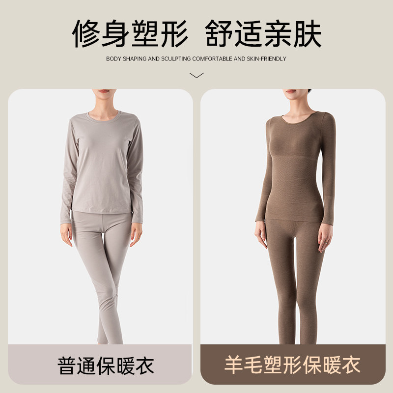 美体保暖内衣套装女羊毛发热秋衣秋裤修身显瘦女士上衣秋冬打底衫
