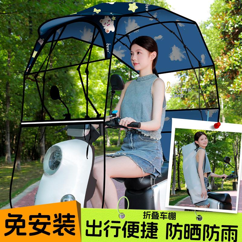 2026新款电动车雨棚可拆卸折叠收缩摩托车雨伞电瓶车挡风遮阳一体