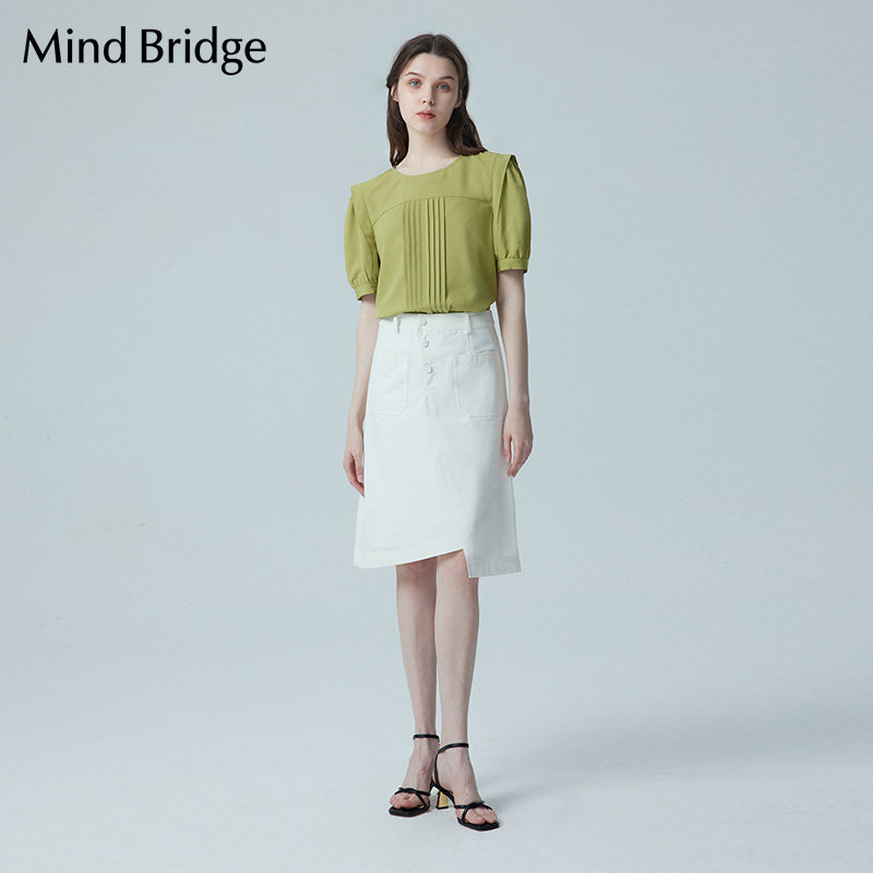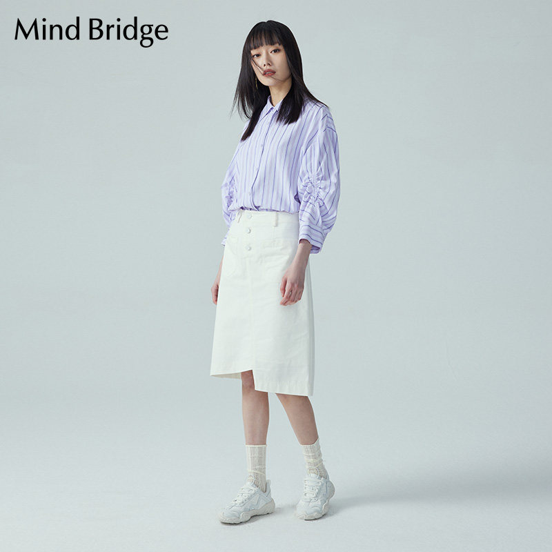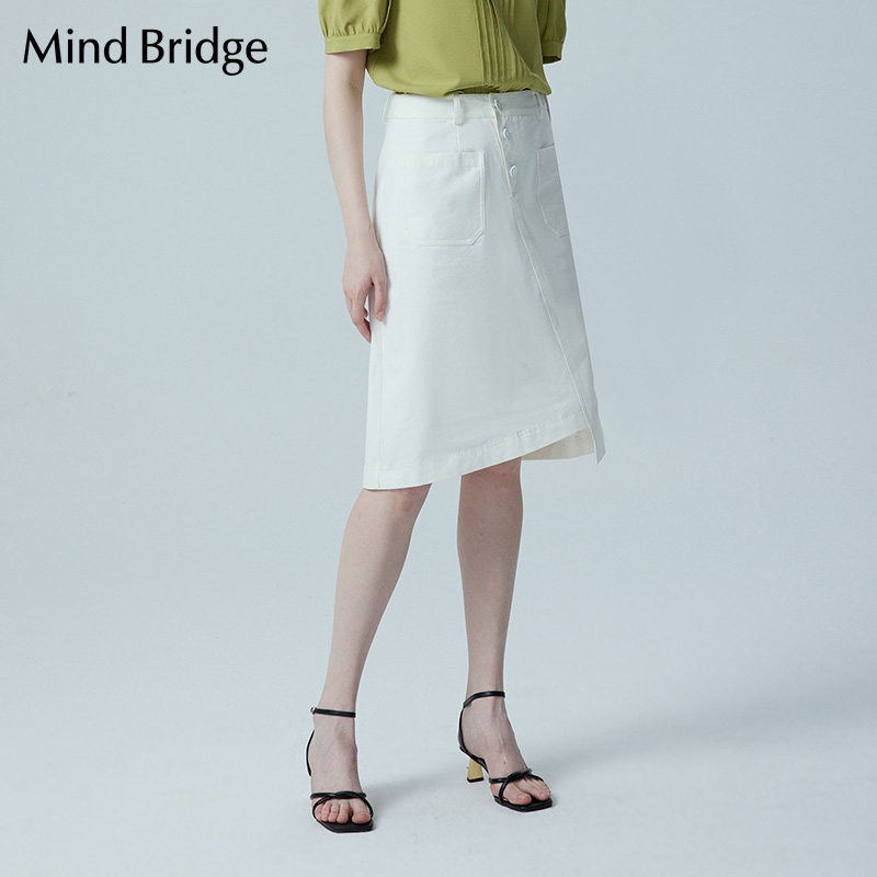 MB MindBridge女士白色半身裙夏季不规则裙摆a字裙设计感通勤裙子