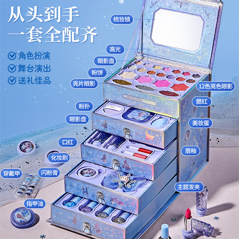 迪士尼儿童化妆品彩妆套装爱莎公主无毒正品可水洗指甲油新年礼物