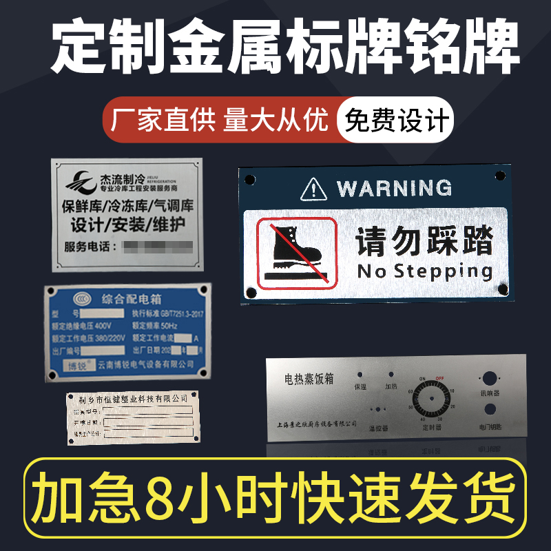 金属标牌定制订做铜铝合金铭牌制作不锈钢牌防腐蚀激光铁牌雕刻字空白标识牌面板贴UV丝印刷企业商标公司logo