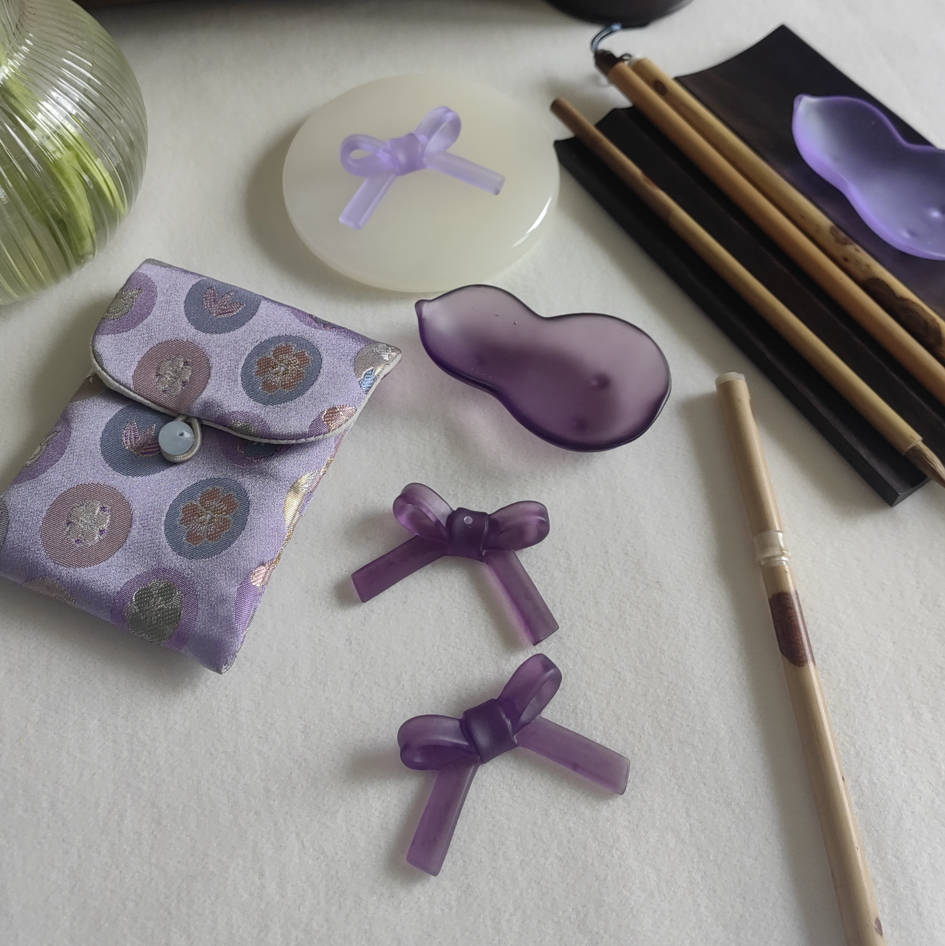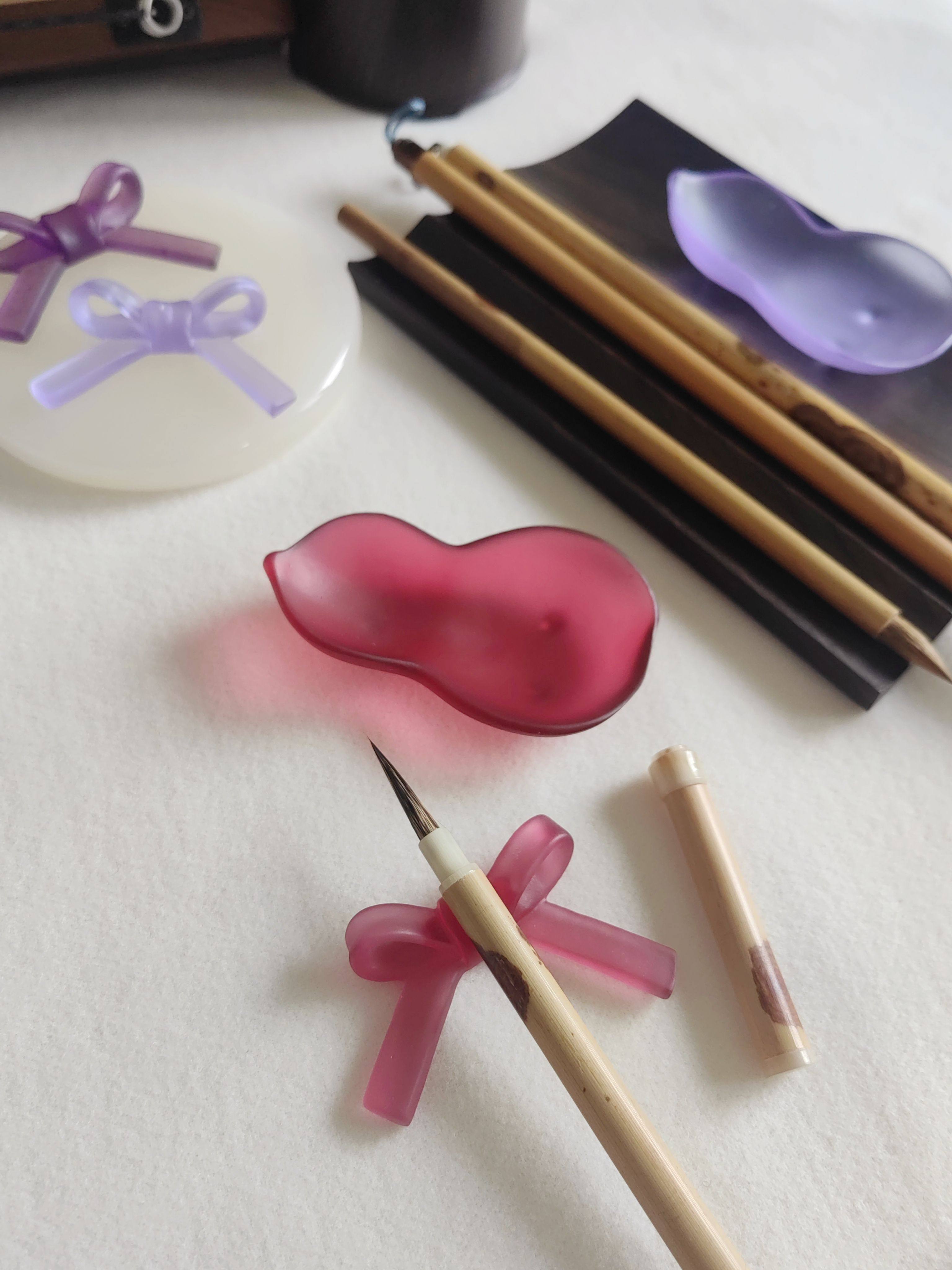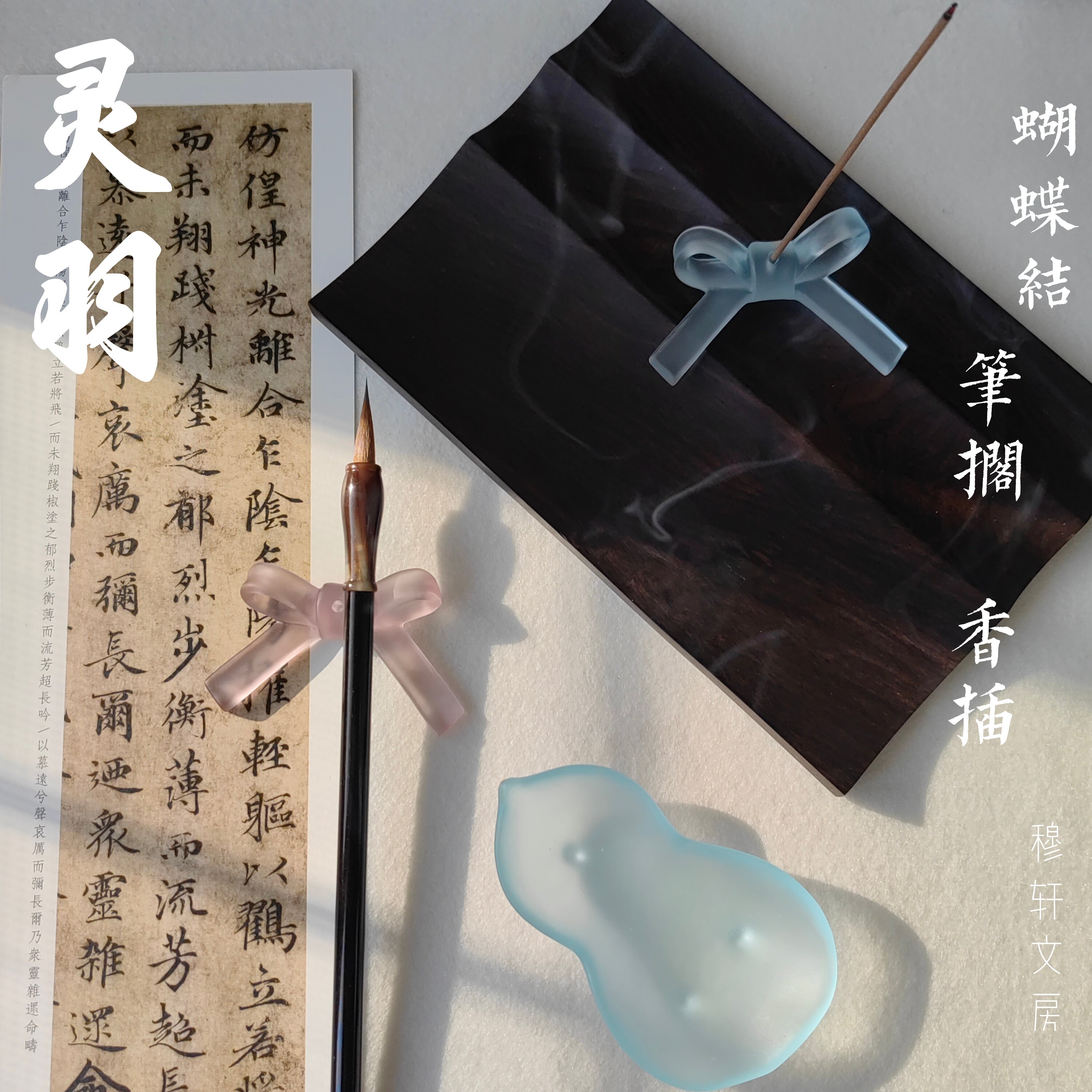 穆轩文房【灵羽】笔搁琉璃文房蝴蝶结可爱文房四宝 送锦袋