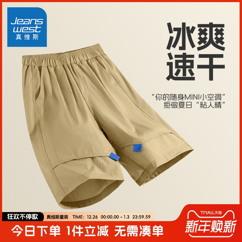 真维斯童装男童裤子男大童夏季凉感五分裤儿童速干冰丝工装短裤薄