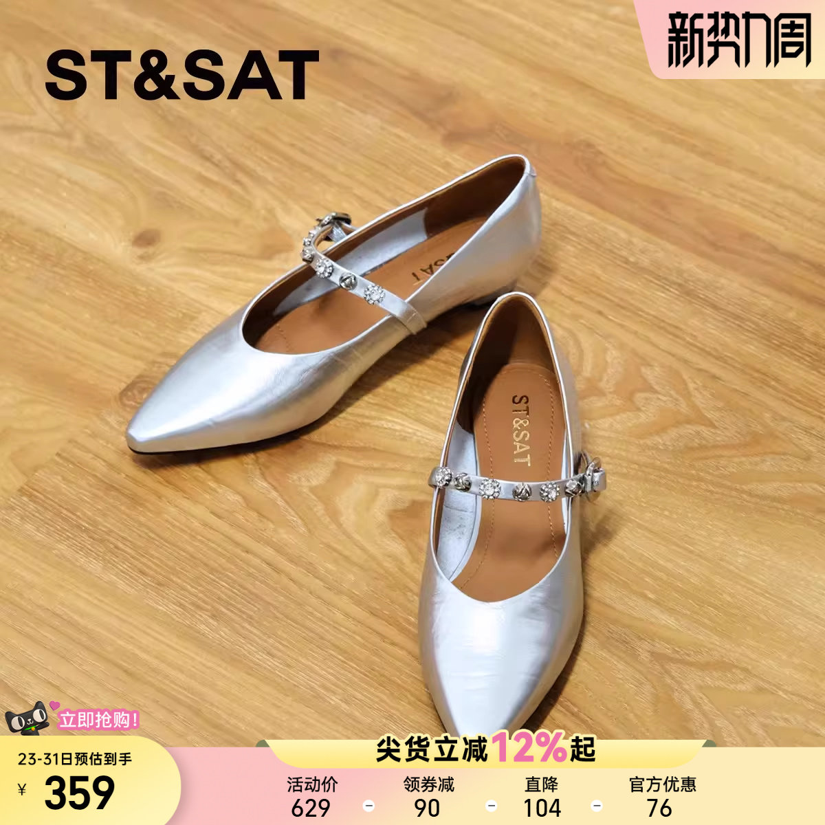 羊皮版~银色玛丽珍鞋女春平底配裙子一字带法式芭蕾单鞋大码女鞋
