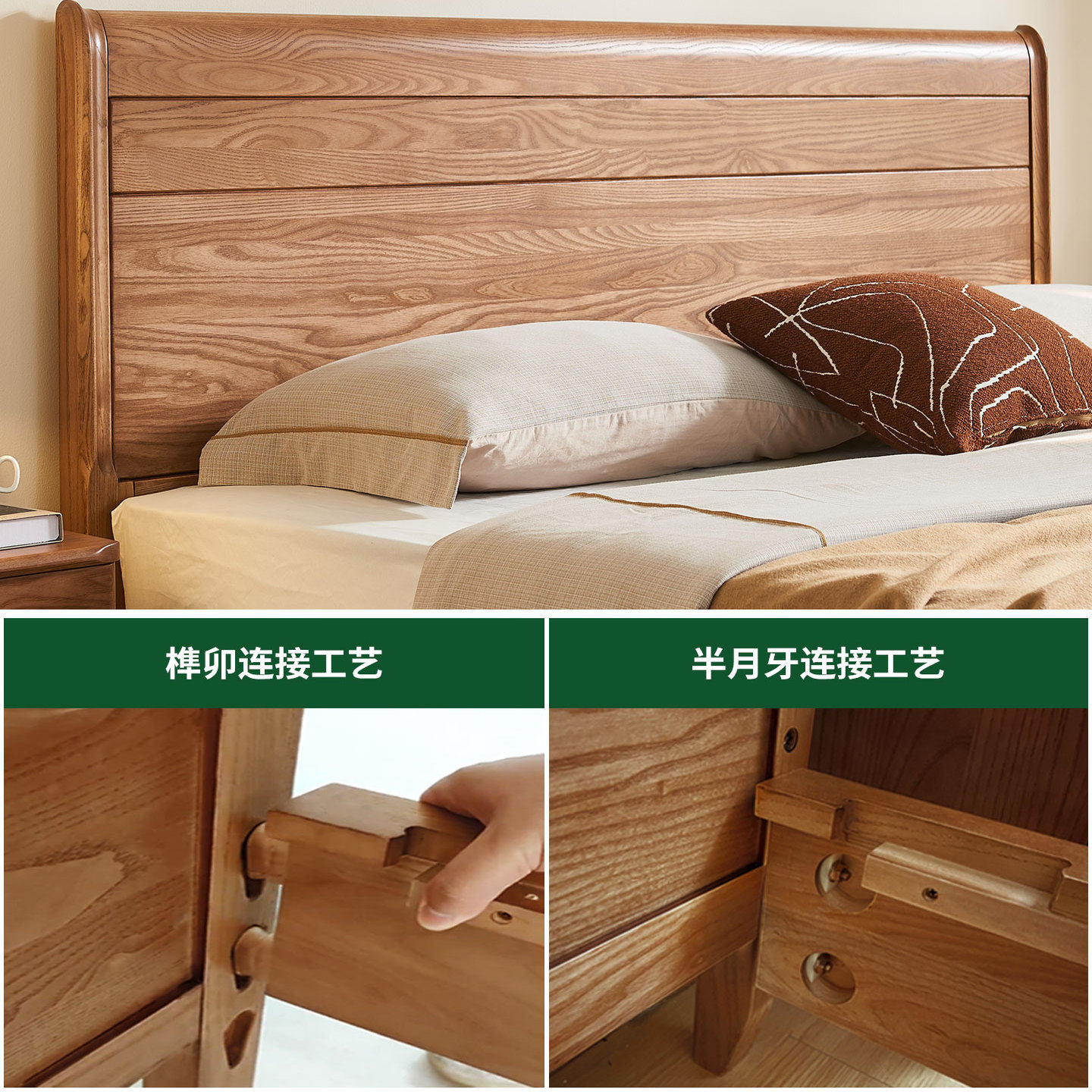 政府补贴榫卯结构白蜡木全实木床1.8m主卧日式侘寂风纯实木双人床