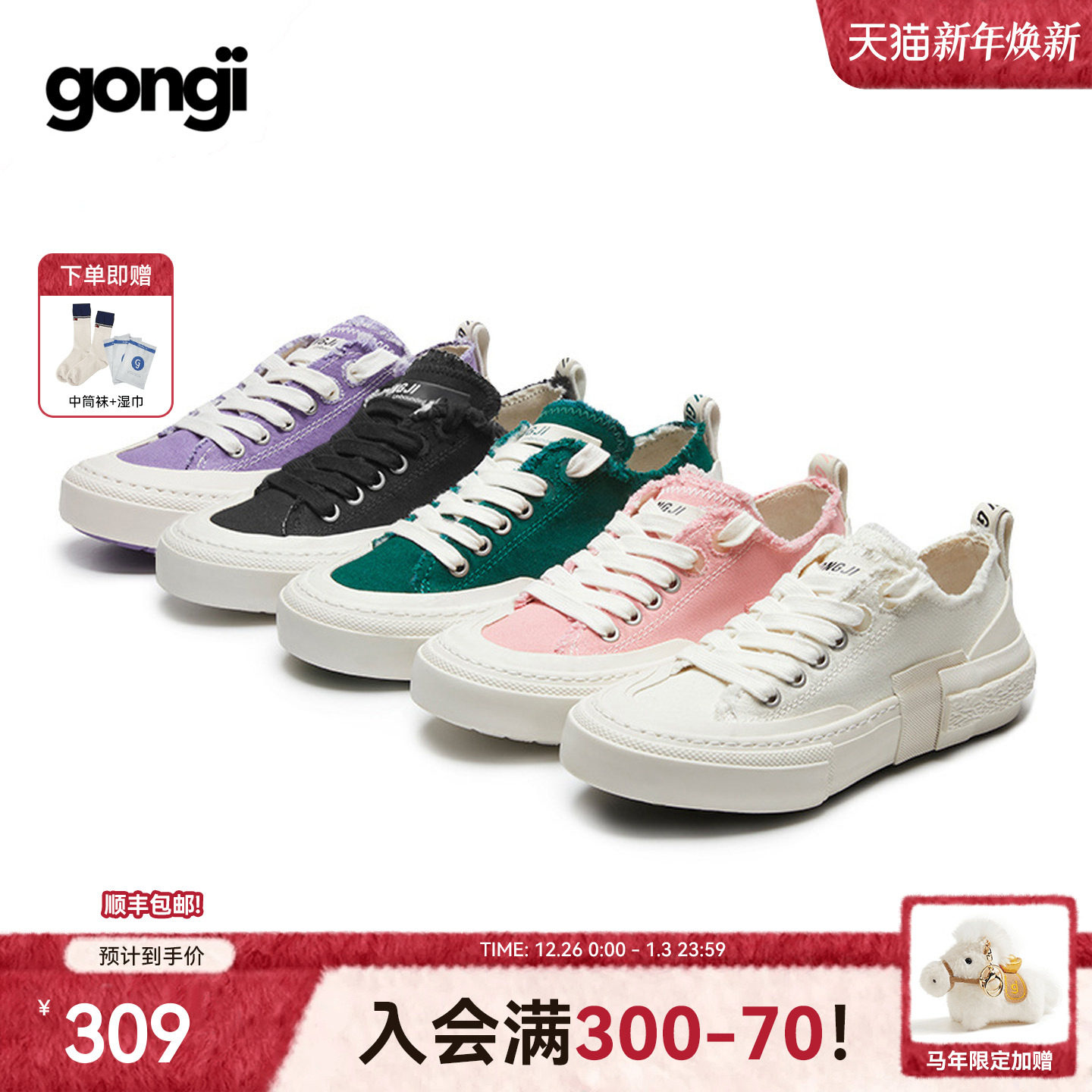 【张艺兴同款】GONGJI帆布鞋女男小众百搭板鞋国潮鞋休闲小白鞋女