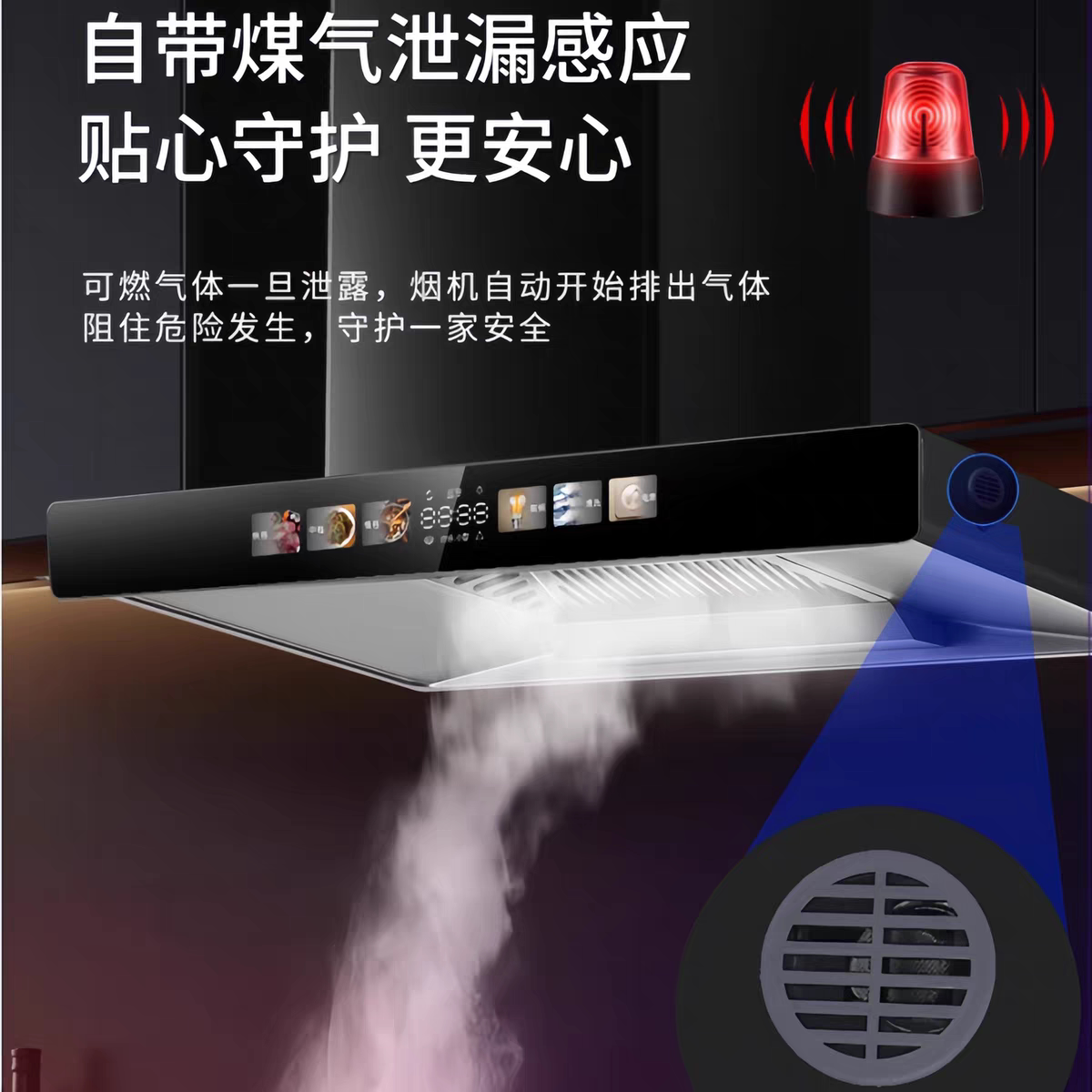 顶吸式抽油烟机家用欧式小尺寸小户型900mm大吸力自动清洗